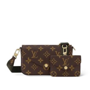 Louis Vuitton Monogram Felicie Strap to Go Cross Bag: A stylish and versatile accessory, the Monogram Felicie Strap to Go Cross Bag by Louis Vuitton combines iconic design with practicality. Crafted from the brand’s signature Monogram canvas, this compact bag features a removable strap, allowing it to be worn as a crossbody, shoulder bag, or clutch. The interior is thoughtfully designed with multiple compartments to organize essentials, making it perfect for day-to-evening wear. Finished with a gold-tone LV logo closure, the Felicie bag effortlessly blends luxury and functionality, making it a must-have piece for Louis Vuitton aficionados.