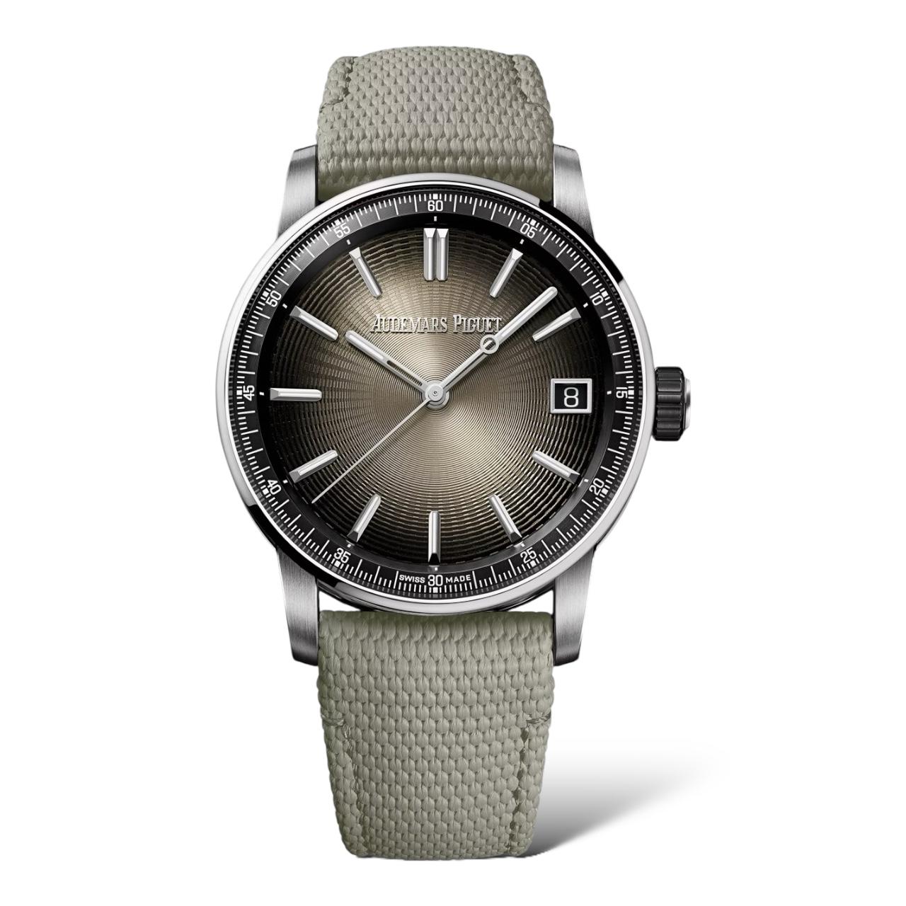The Audemars Piguet Code 11.59 is a 41mm selfwinding timepiece that blends modern design with traditional craftsmanship. Its case combines a black ceramic middle with a stainless steel bezel, lugs, and caseback, offering a contemporary aesthetic. The smoked beige dial features white gold hour-markers and hands with luminescent coating.