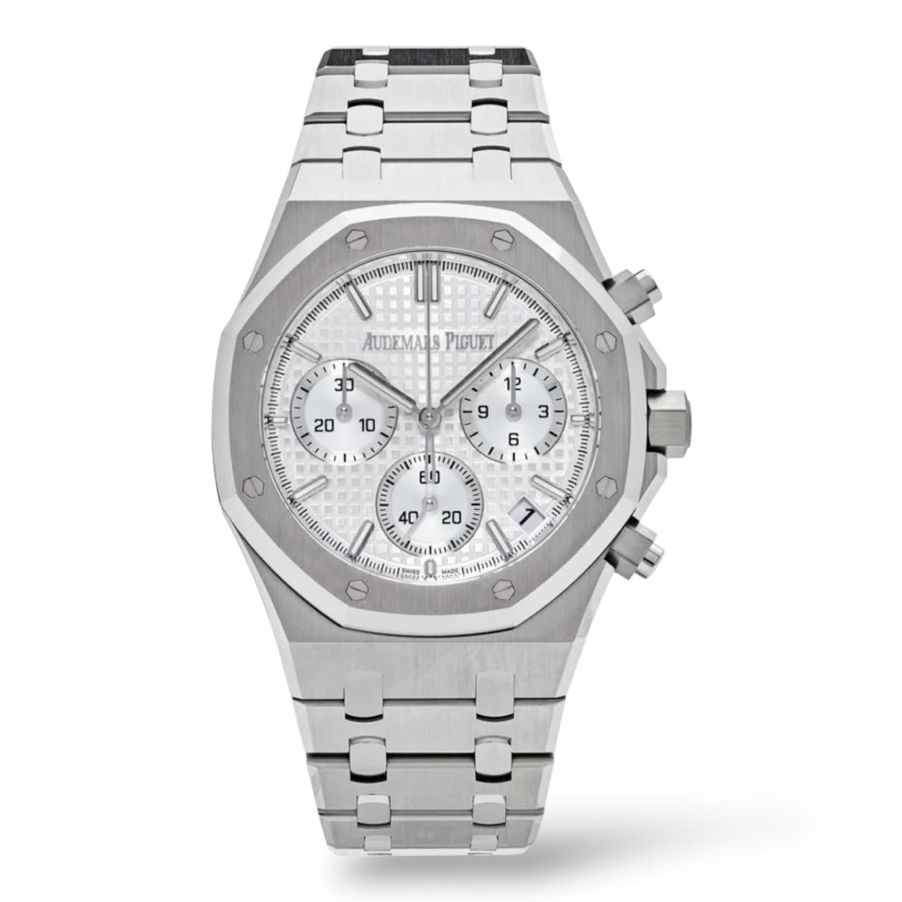 The Audemars Piguet Royal Oak Selfwinding Chronograph “50th Anniversary” is a celebration of the brand’s enduring legacy. This iconic timepiece commemorates its 50th anniversary with a refined design and exceptional craftsmanship. The instantly recognizable octagonal bezel and “Grande Tapisserie” dial remain hallmarks of the Royal Oak collection. A sleek 41mm stainless steel case and a luxurious white dial create a sophisticated and timeless look.