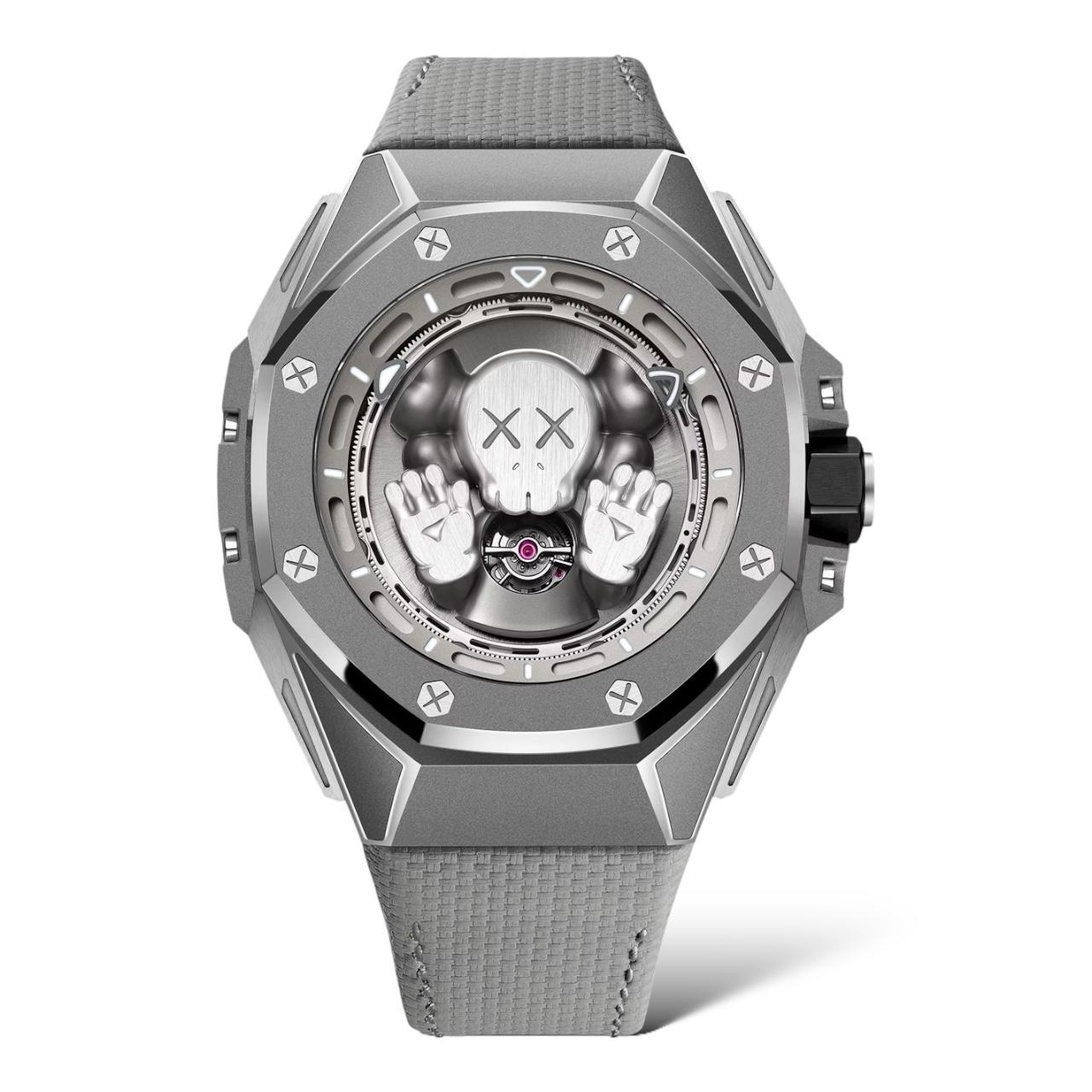 This limited-edition 43mm titanium watch is a bold collaboration with artist KAWS, featuring his iconic “Companion” figure integrated into the openworked dial. With a flying tourbillon at 6 o’clock and a peripheral time display, it’s powered by the hand-wound Calibre 2979. Only 250 pieces made, it comes with two calfskin straps and a quick-change system.
