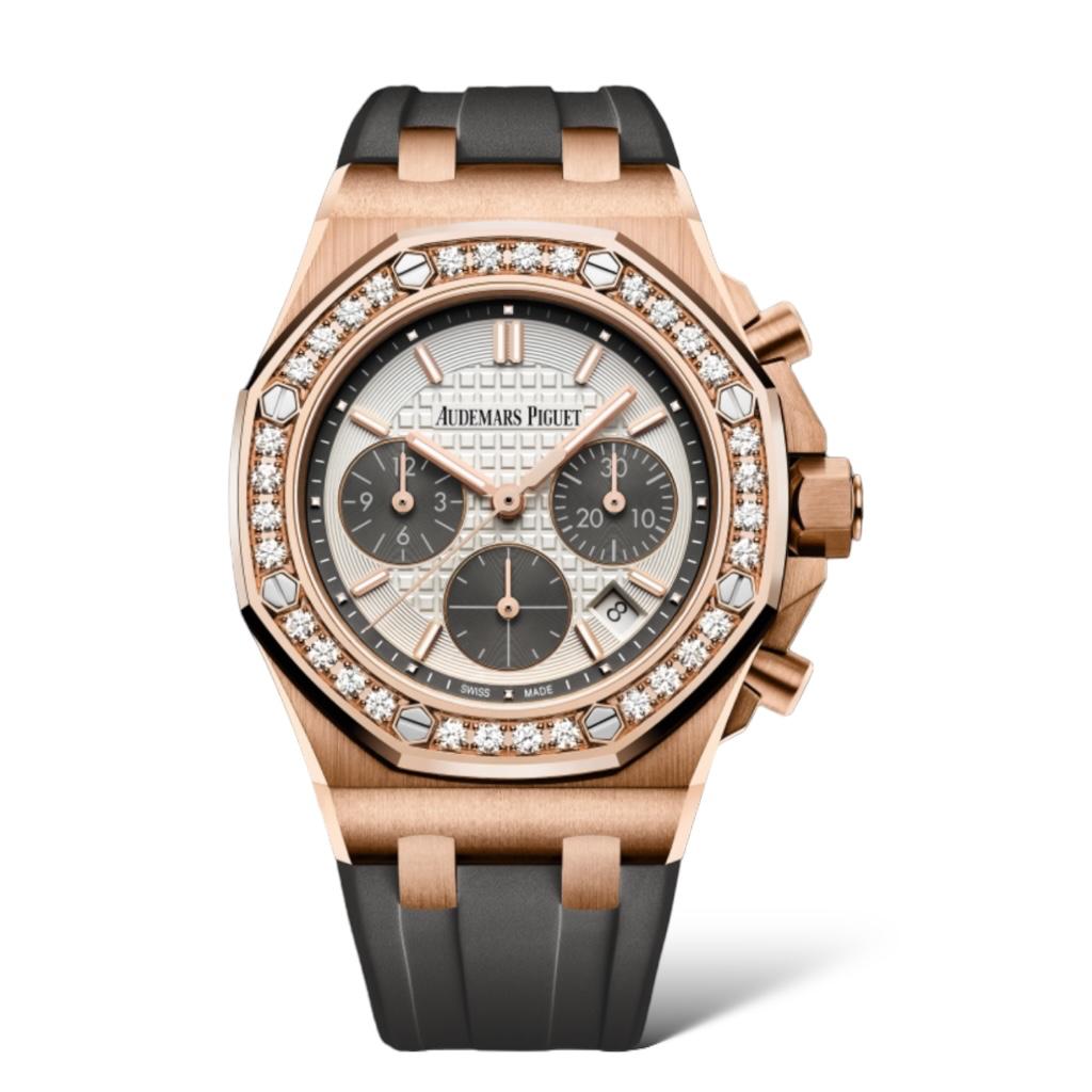 The iconic Royal Oak Offshore design is complemented by a grey dial with a “Méga Tapisserie” pattern, showcasing the brand’s attention to detail and craftsmanship. With its 37mm case size, this watch is perfect for those who appreciate both style and functionality.