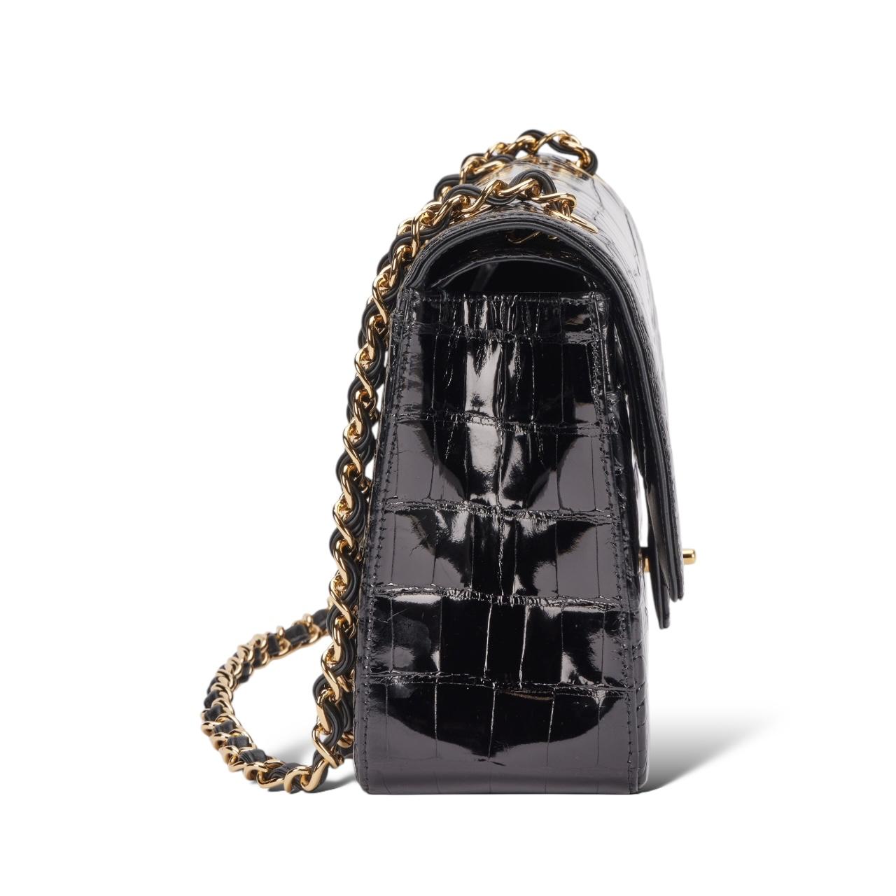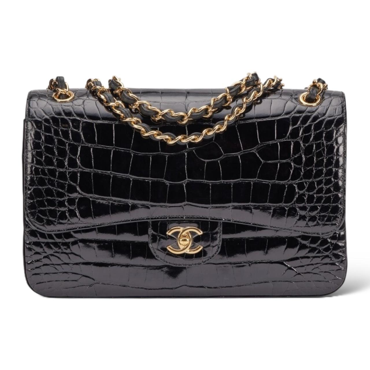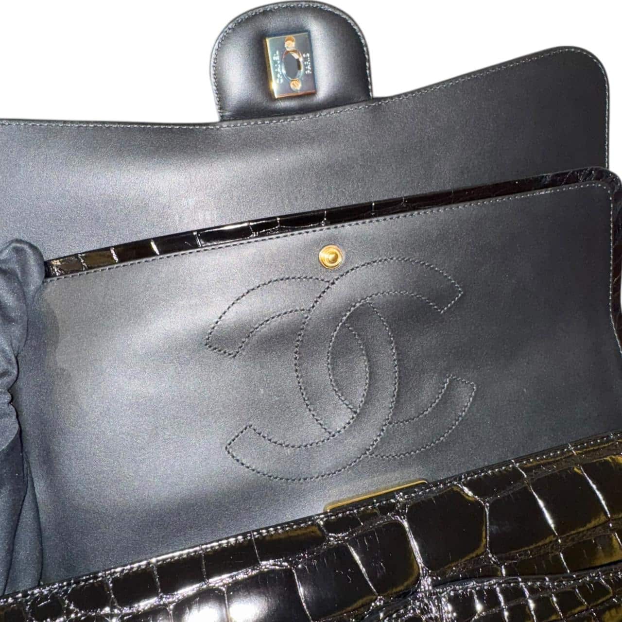 Chanel Jumbo Black Shiny Croco Double Flap Bag