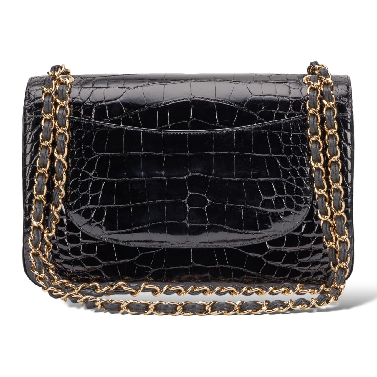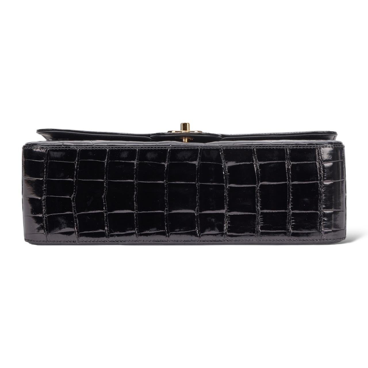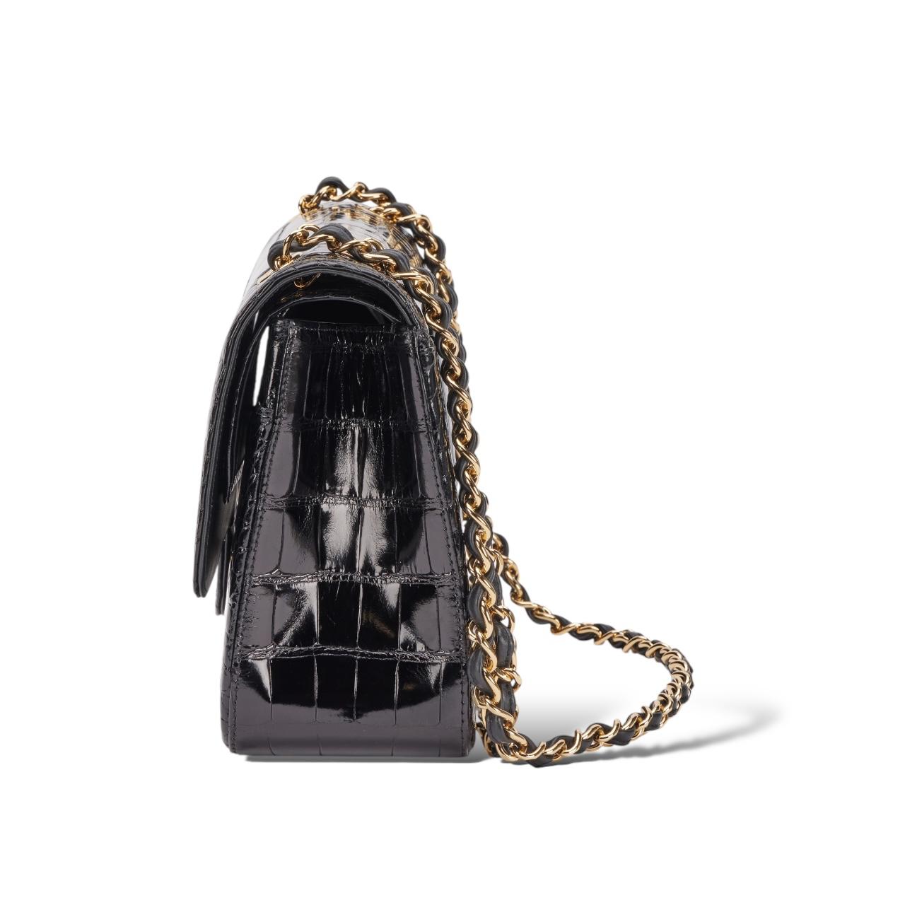 Chanel Jumbo Black Shiny Croco Double Flap Bag