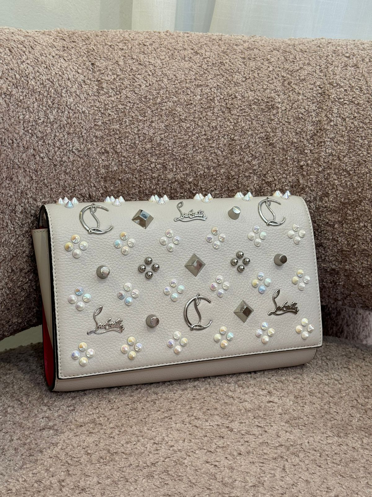 The Christian Louboutin Paloma Clutch in Textured Leather is a sophisticated and elegant accessory that showcases the brand’s signature style and craftsmanship.