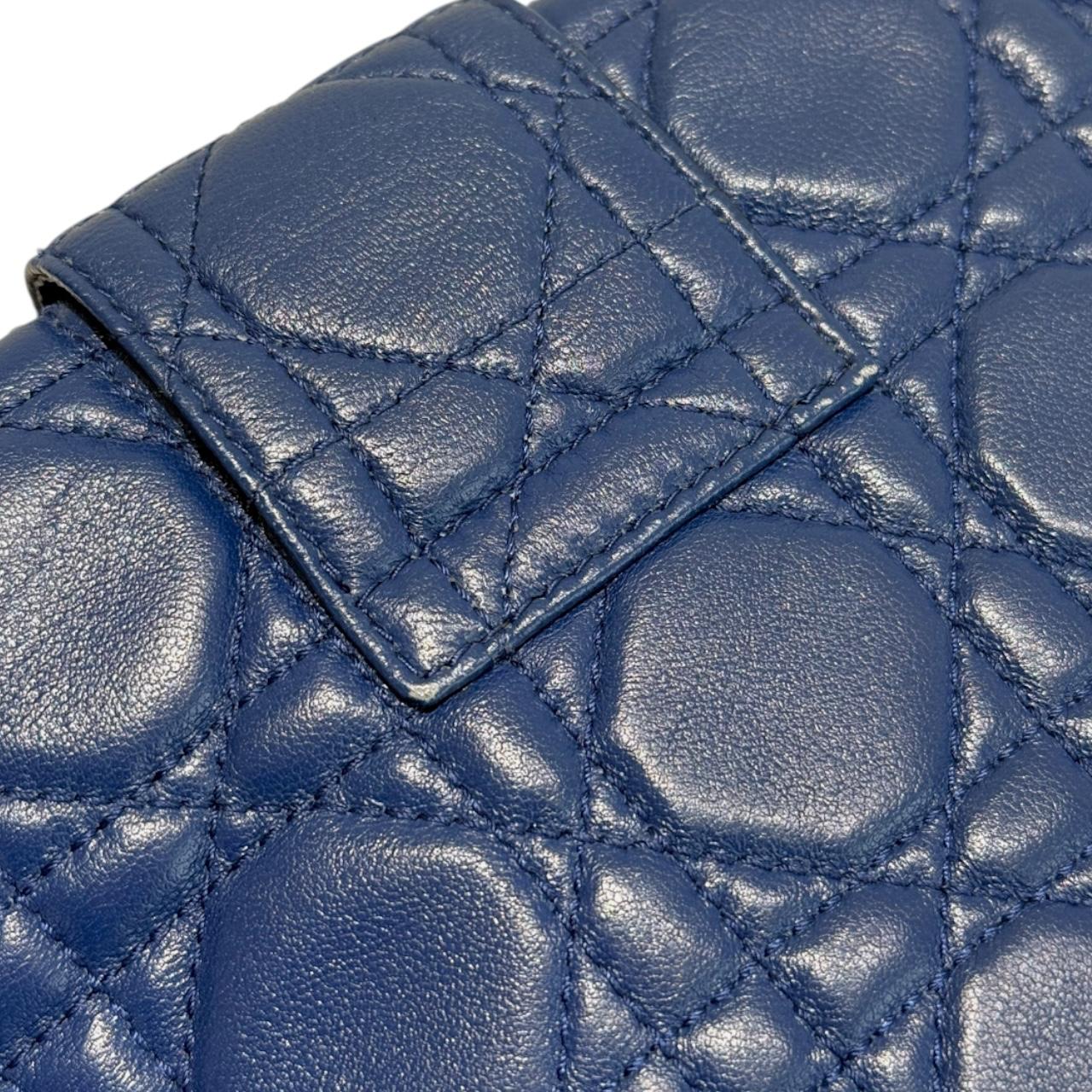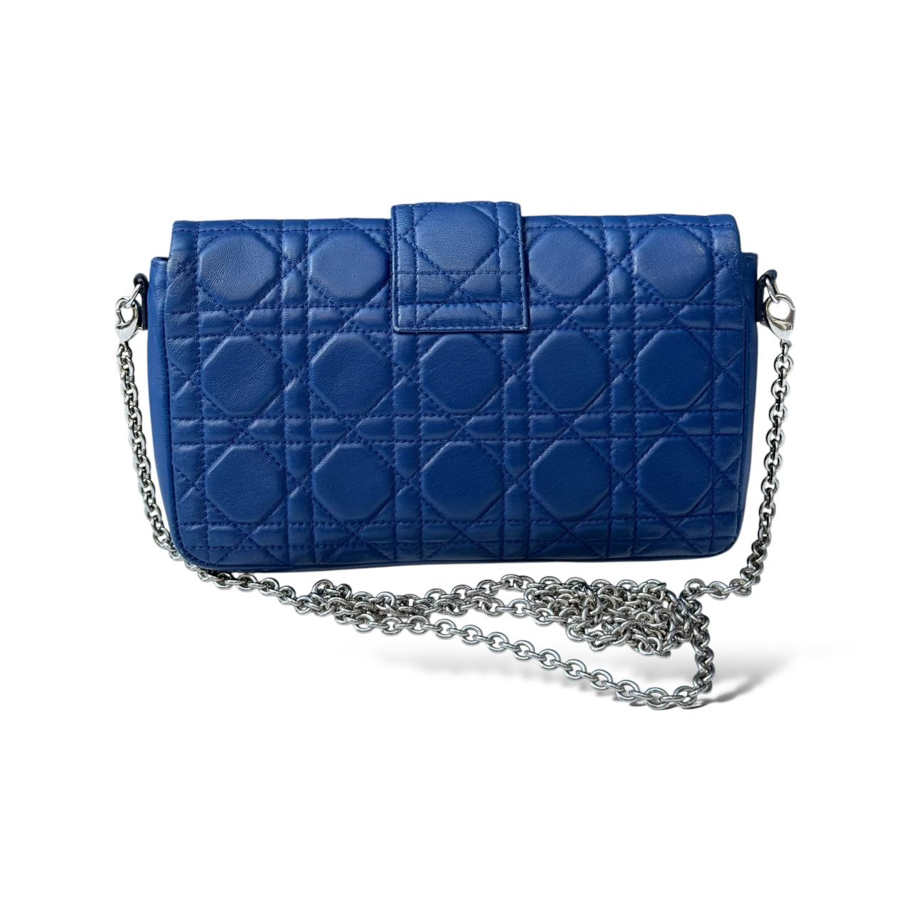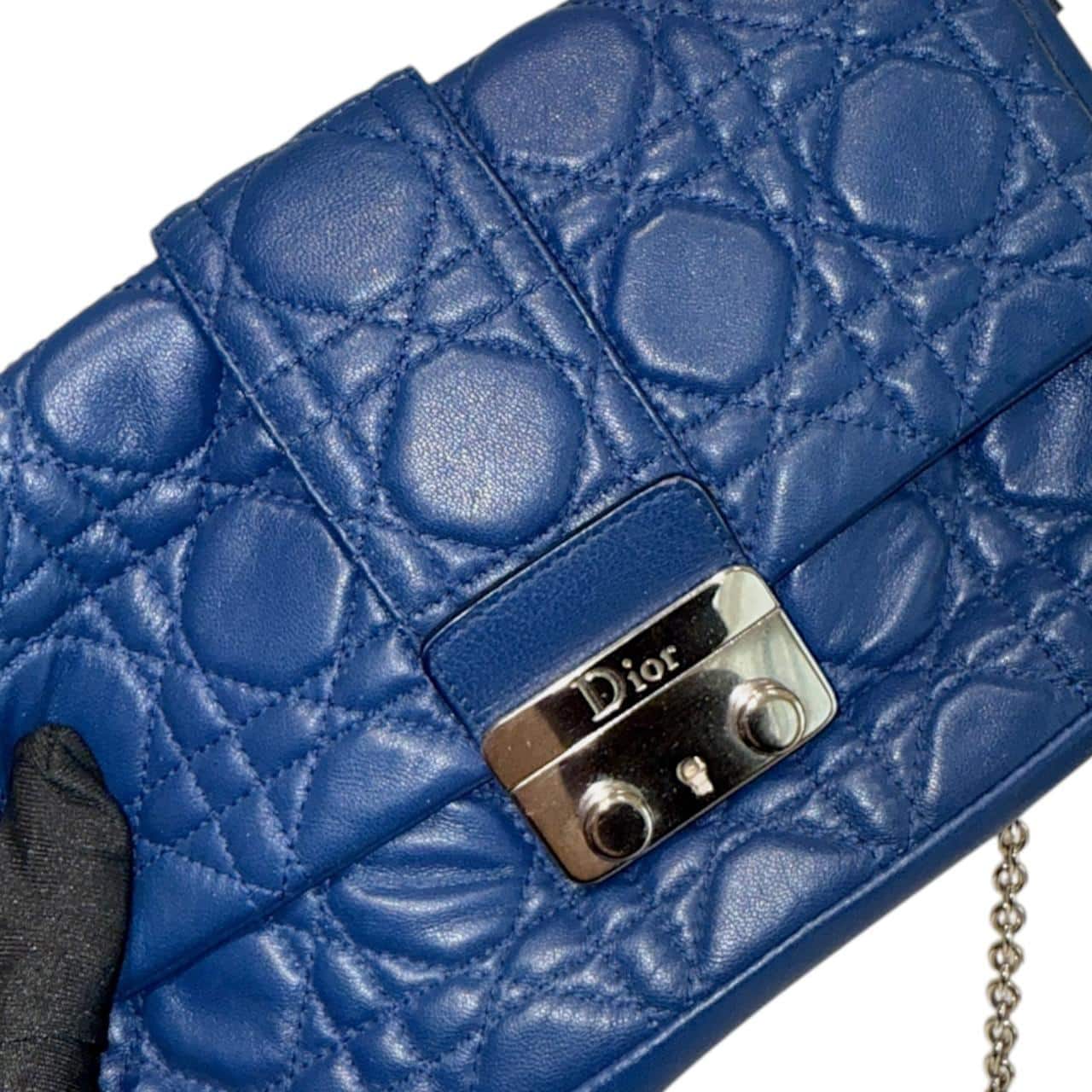 Dior Cannage New Lock Wallet on Chain in Blue Leather Bag