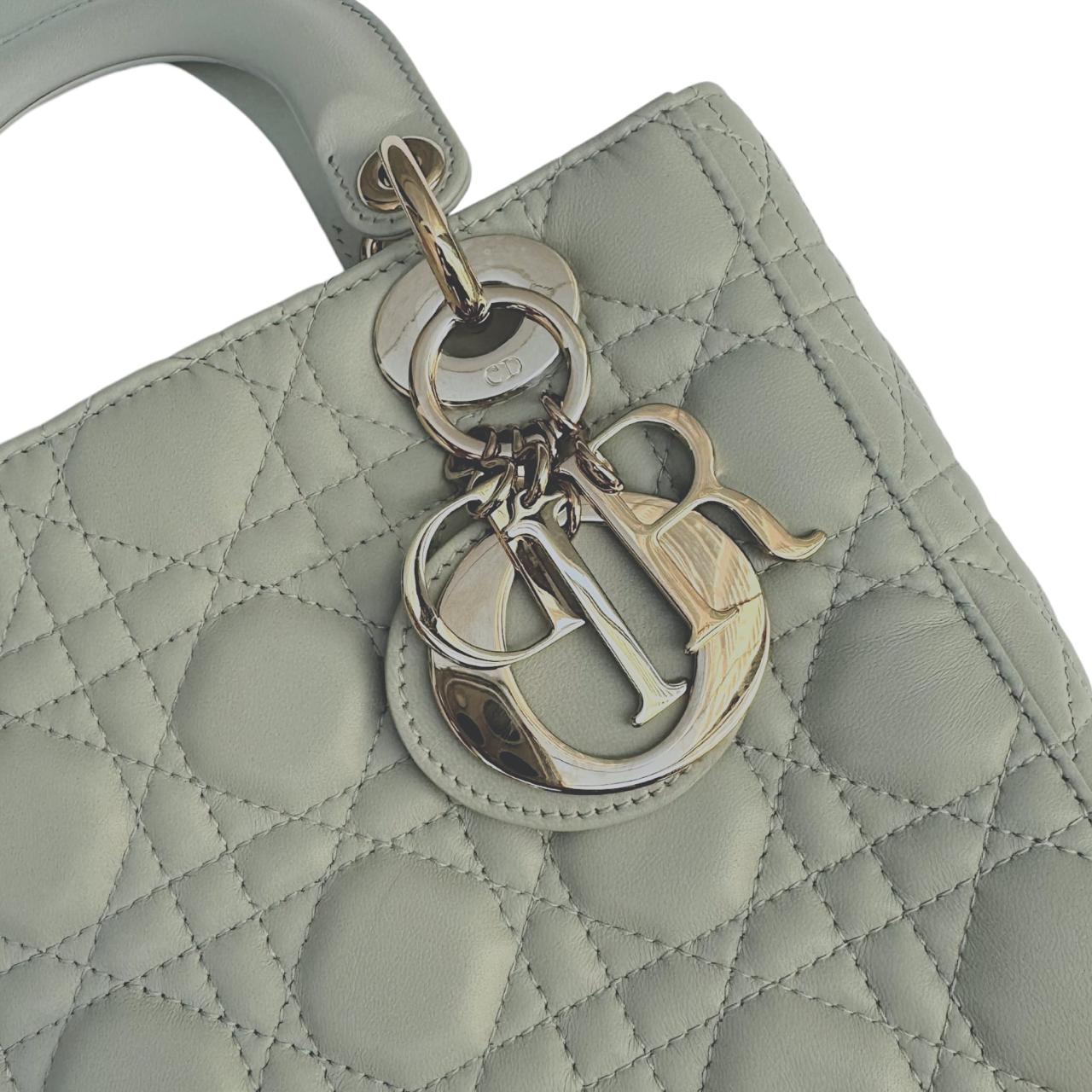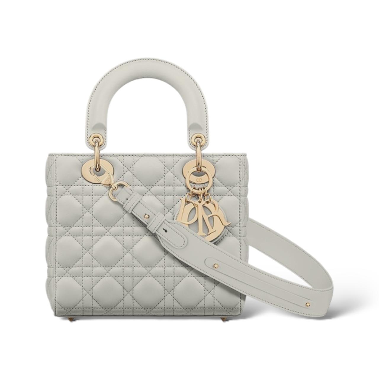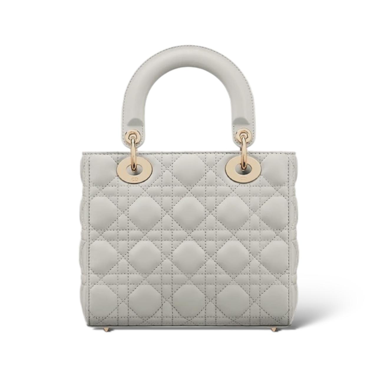 The Dior My ABCDior Cloud Gray Cannage Lambskin Bag Small is an exquisite accessory that showcases the iconic craftsmanship of the Dior brand. This small handbag is elegantly crafted from soft lambskin leather, featuring the signature Cannage quilted pattern that adds texture and sophistication to its design.