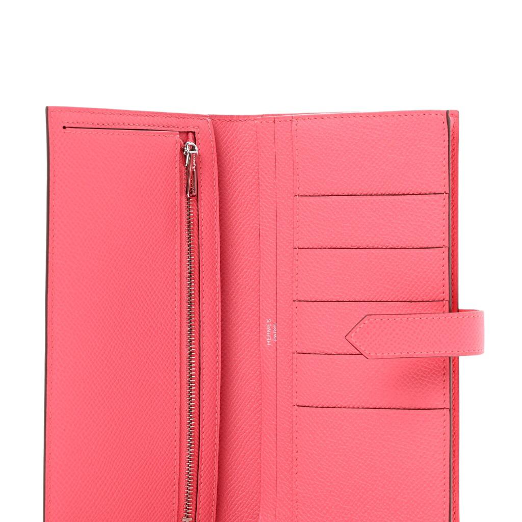 Hermes Bearn Gusset Rose Epsom Wallet PHW