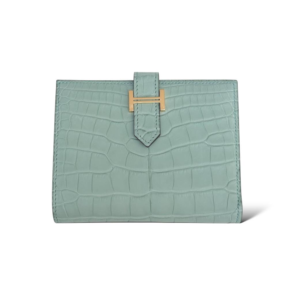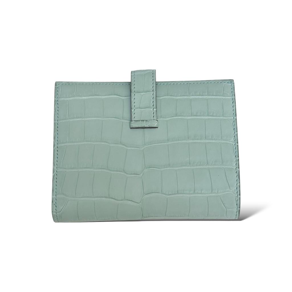 The Hermès Bearn Compact Wallet in Vert d’Eau Crocodile Leather with Gold Hardware (GHW) is a luxurious and elegant accessory, perfect for those who appreciate refined craftsmanship and timeless style. Made from exotic crocodile leather, it showcases the serene Vert d’Eau hue—a soft, aquatic green that exudes sophistication and subtle charm.