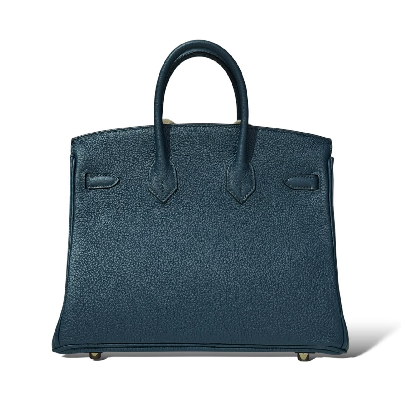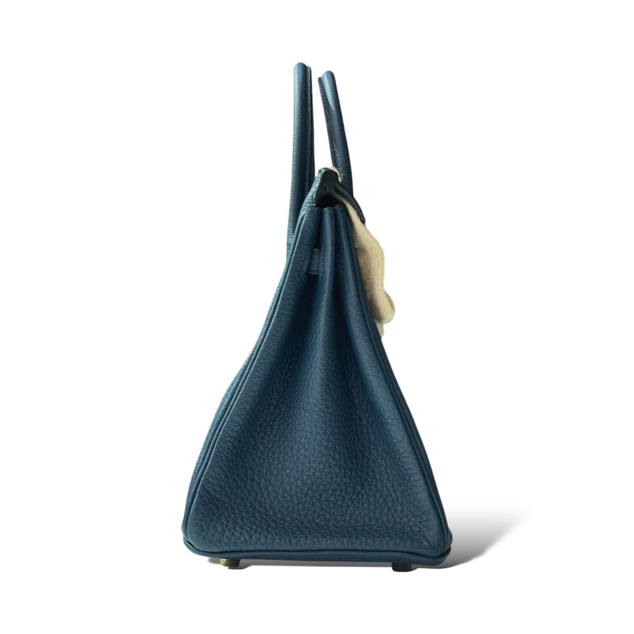 The Hermès Birkin 25 in Bleu de Prusse Togo with Gold Hardware (GHW) is a luxurious and elegant handbag that exudes timeless sophistication. Crafted from durable Togo leather, the bag features a rich Bleu de Prusse color, a deep and captivating blue that adds a refined touch to any ensemble. The sleek Gold Hardware perfectly complements the bag’s classic silhouette, providing a modern yet understated finish. Compact yet spacious enough for your essentials, the Birkin 25 is a true icon of style and craftsmanship, making it an exquisite addition to any collection.