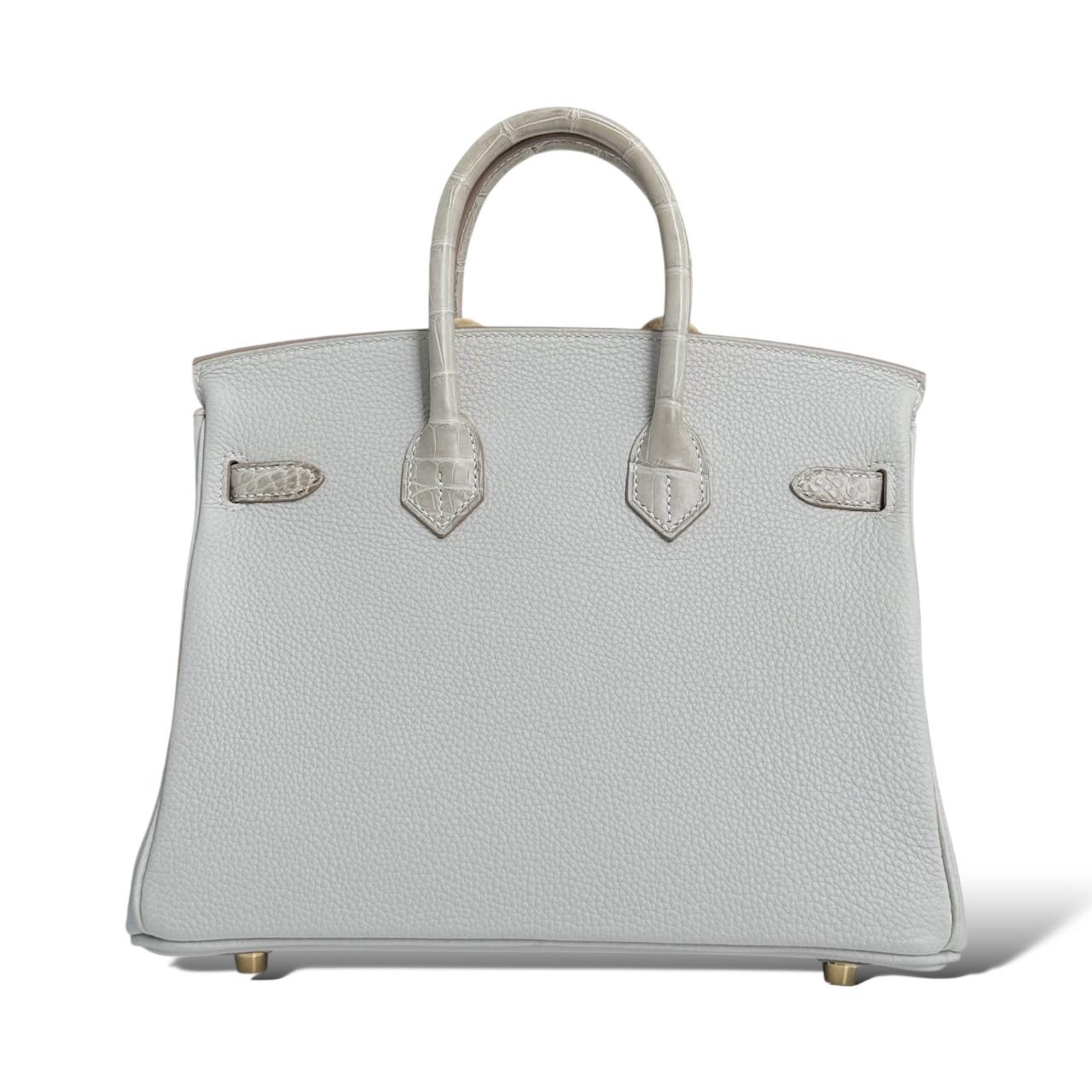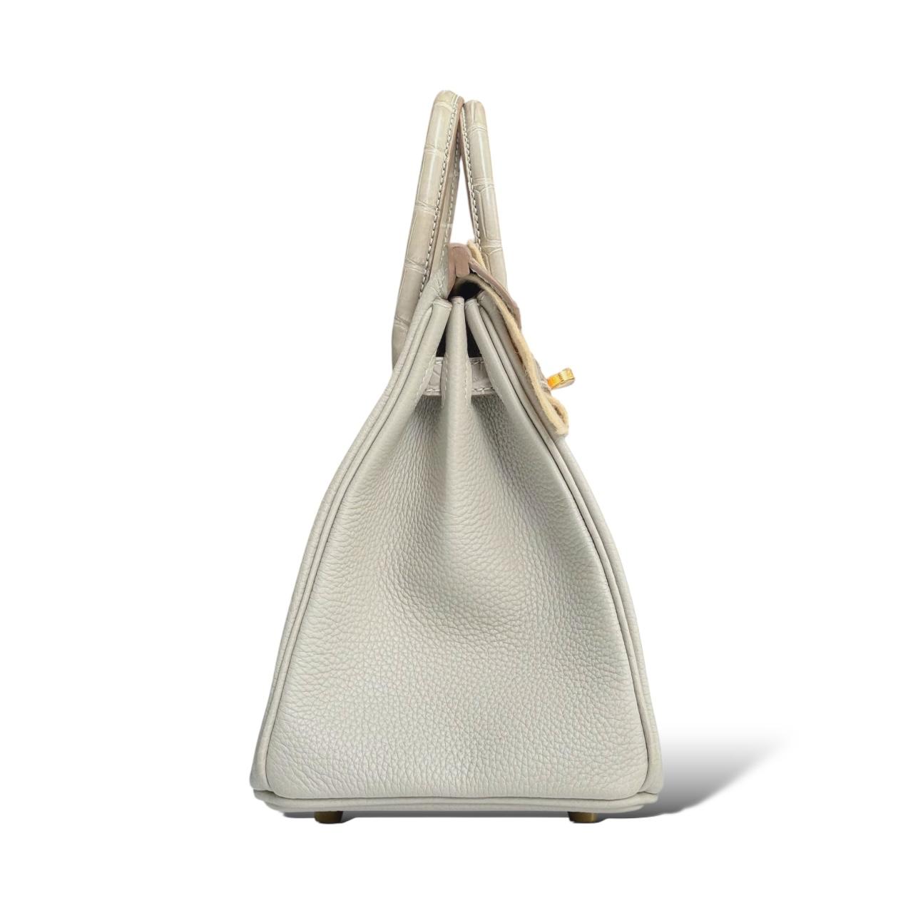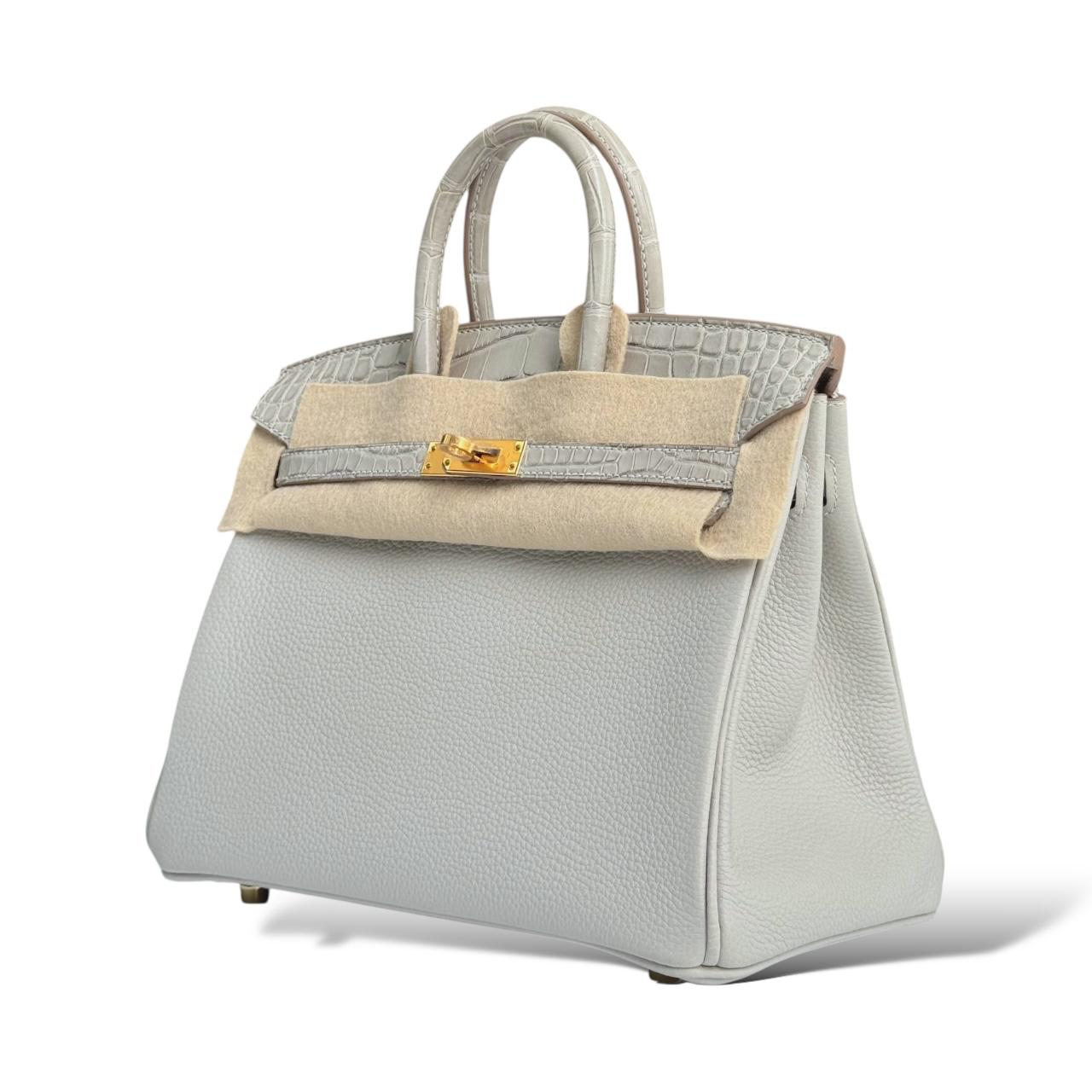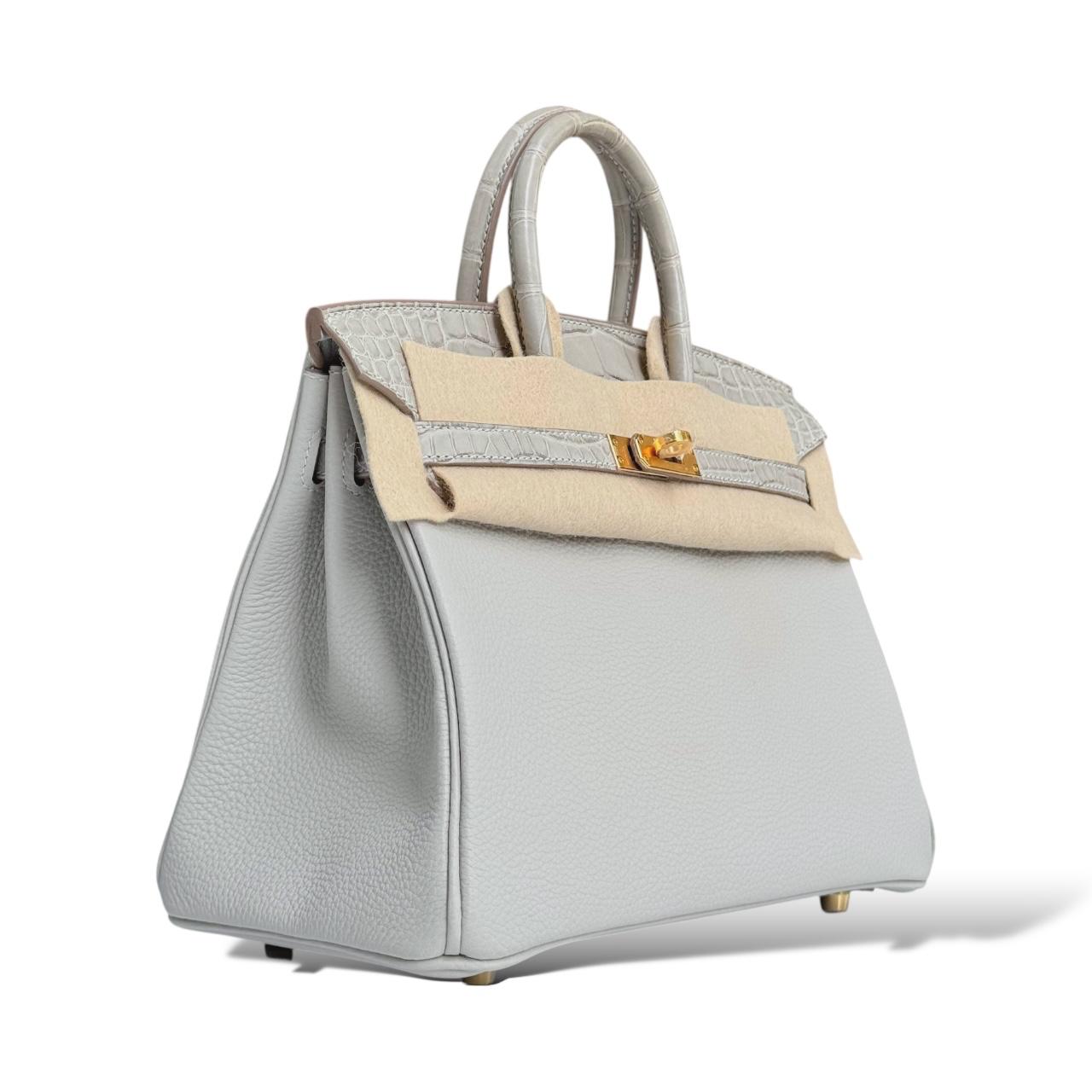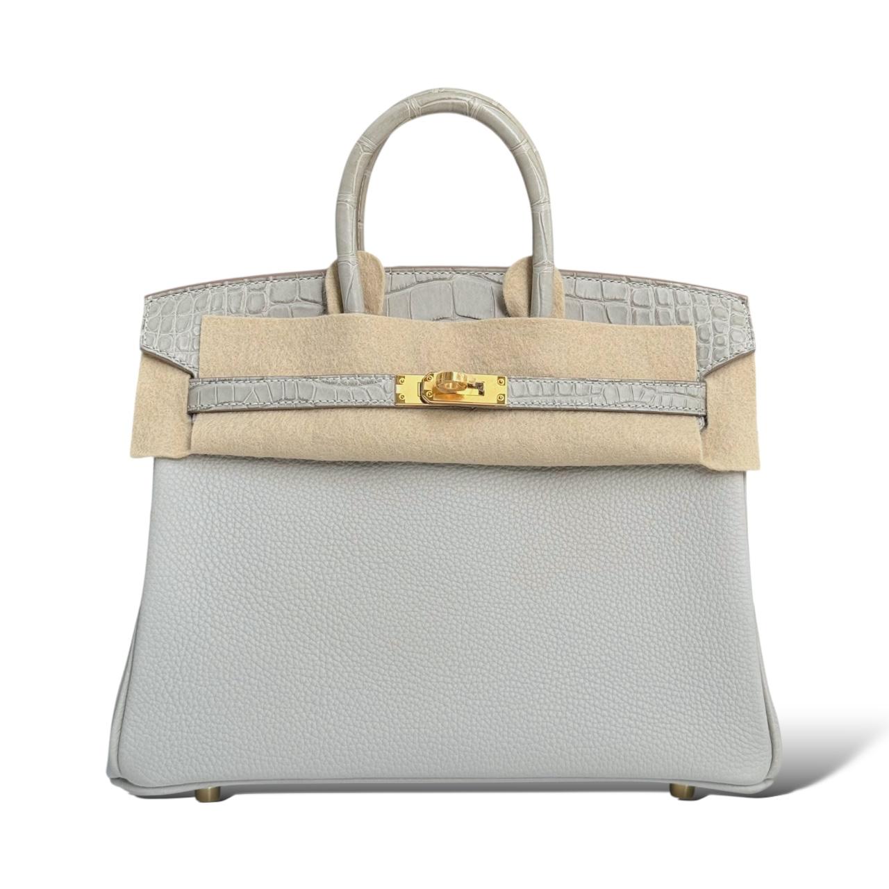 This exquisite Hermès Birkin 25 in Gris Perle is a timeless piece from the Touch collection, crafted in a mix of luxurious Togo leather and shiny alligator accents. The soft grey hue, known as Gris Perle, is beautifully complemented by the rich texture contrast and finished with elegant gold hardware (GHW). Sized at 25cm, it’s the perfect mini statement bag that offers both sophistication and rarity—ideal for collectors and fashion connoisseurs alike. Comes in full set, never used.