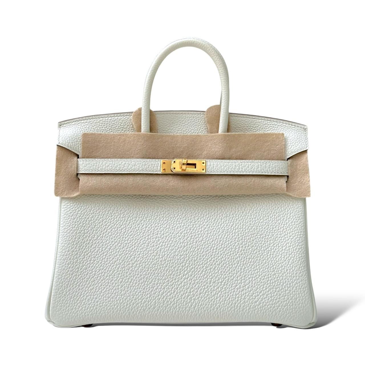 The Hermes Birkin 25 in Mushroom Togo leather with Gold Hardware (GHW) is a sophisticated and compact handbag by the renowned French luxury brand, Hermes. This elegant 25-centimeter bag showcases a subtle Mushroom hue in fine-grained Togo leather, paired with classic gold hardware, offering a timeless and versatile accessory for the modern fashion enthusiast.
