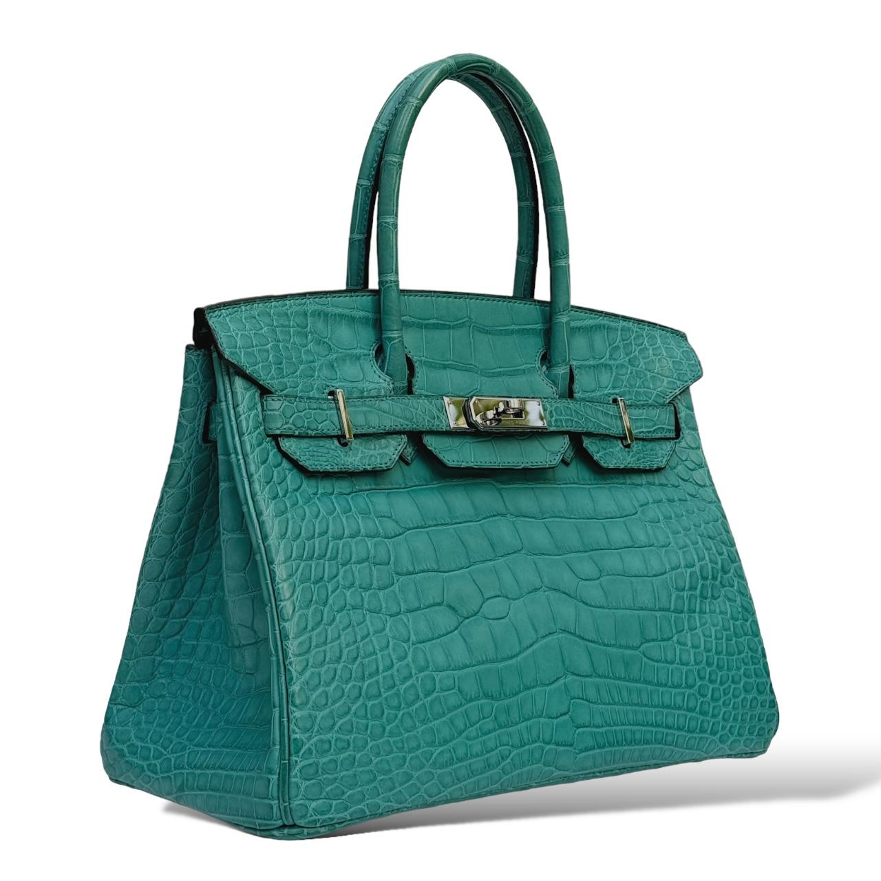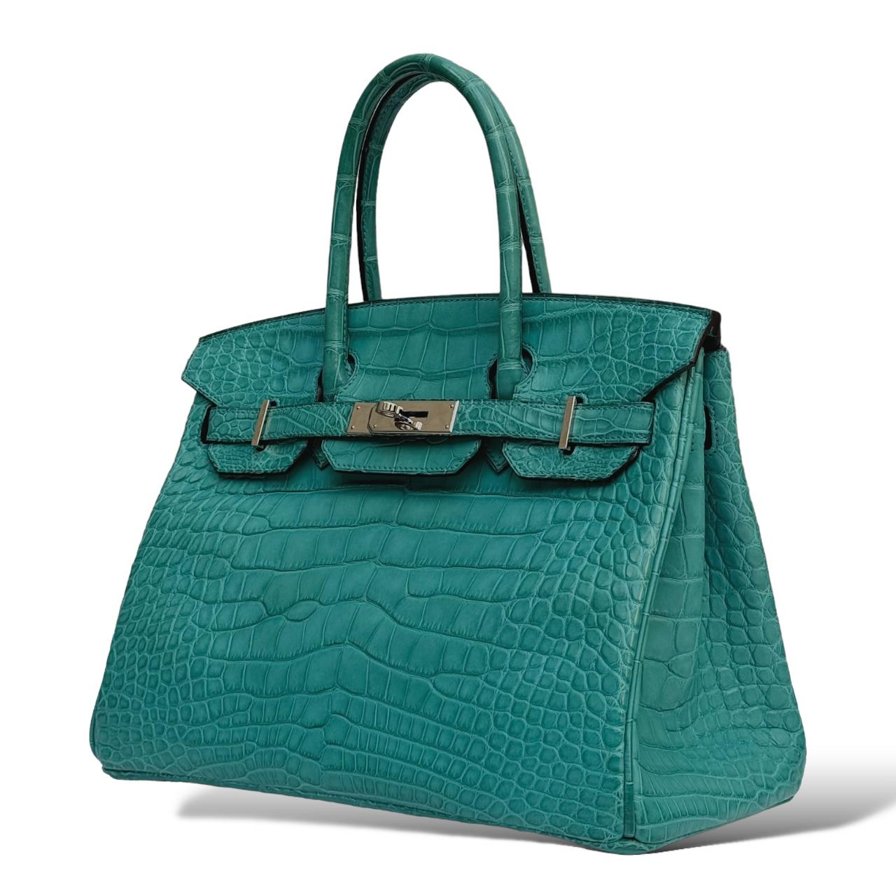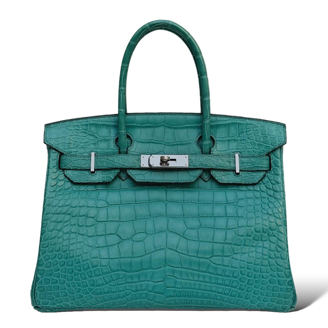 The Hermes Birkin 30 in Bleu Paon Matte Croco with Palladium Hardware is a stunning luxury handbag. Made from exquisite matte crocodile leather, it features a vibrant Bleu Paon color and iconic palladium hardware. The 30 cm size is perfect for daily essentials, while the hand-stitched details showcase Hermes’ exceptional craftsmanship. This bag is a stylish and versatile accessory, ideal for both casual and formal occasions.