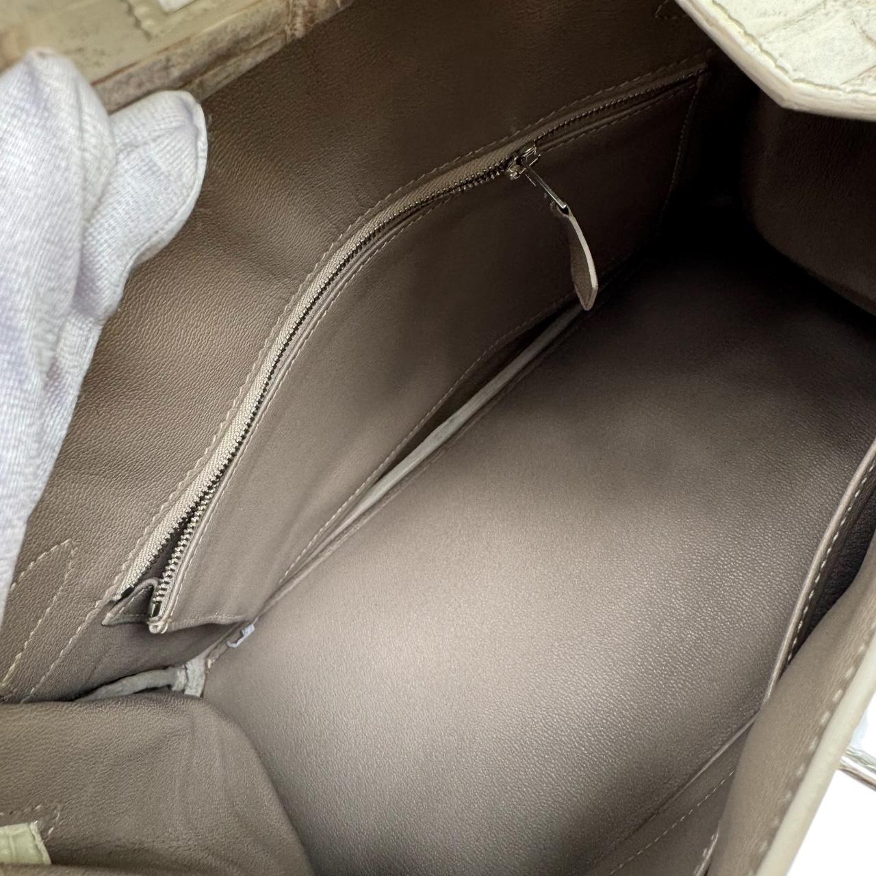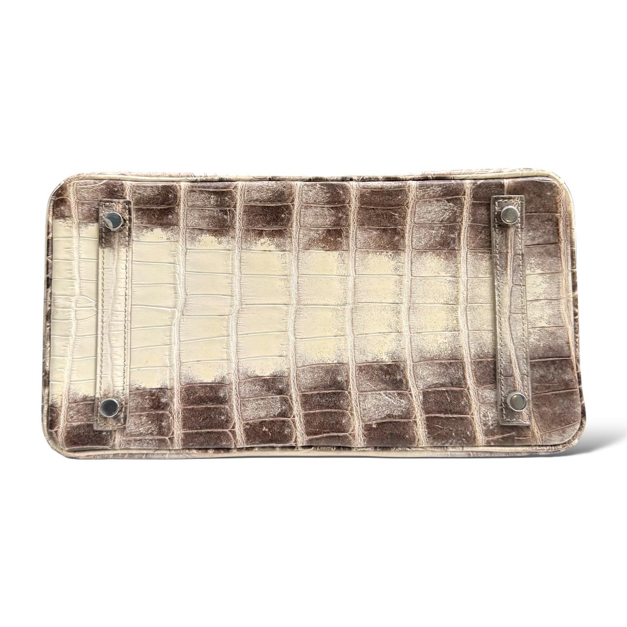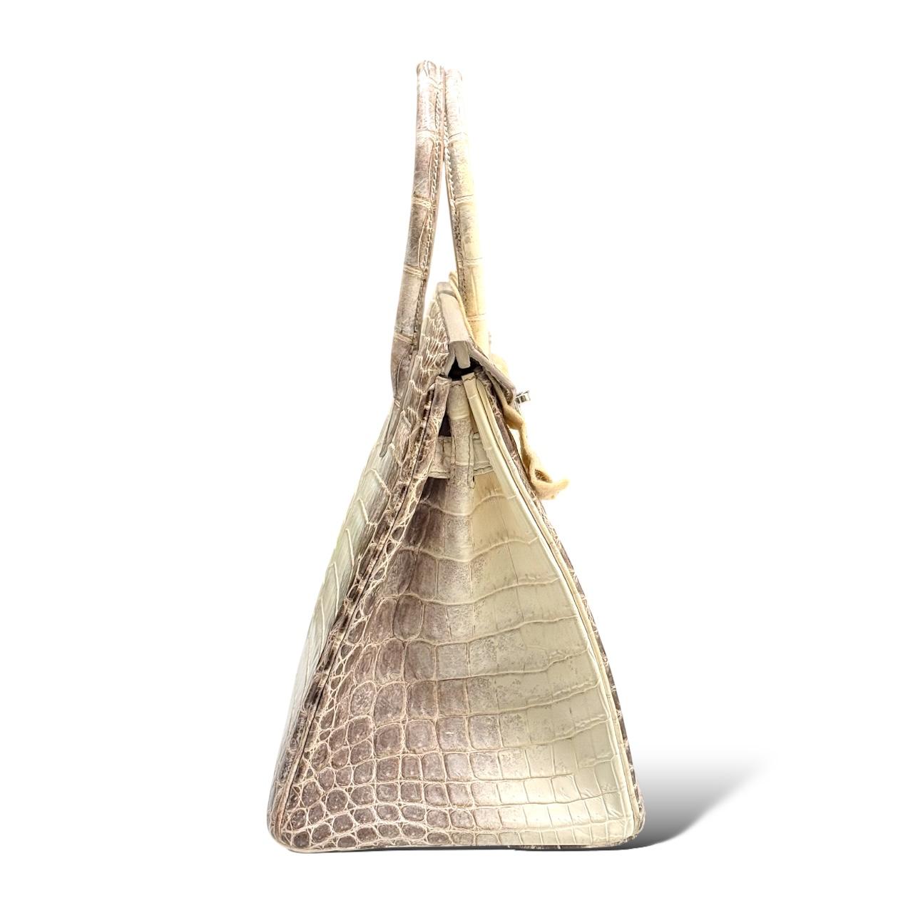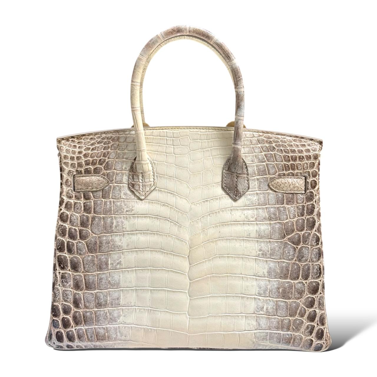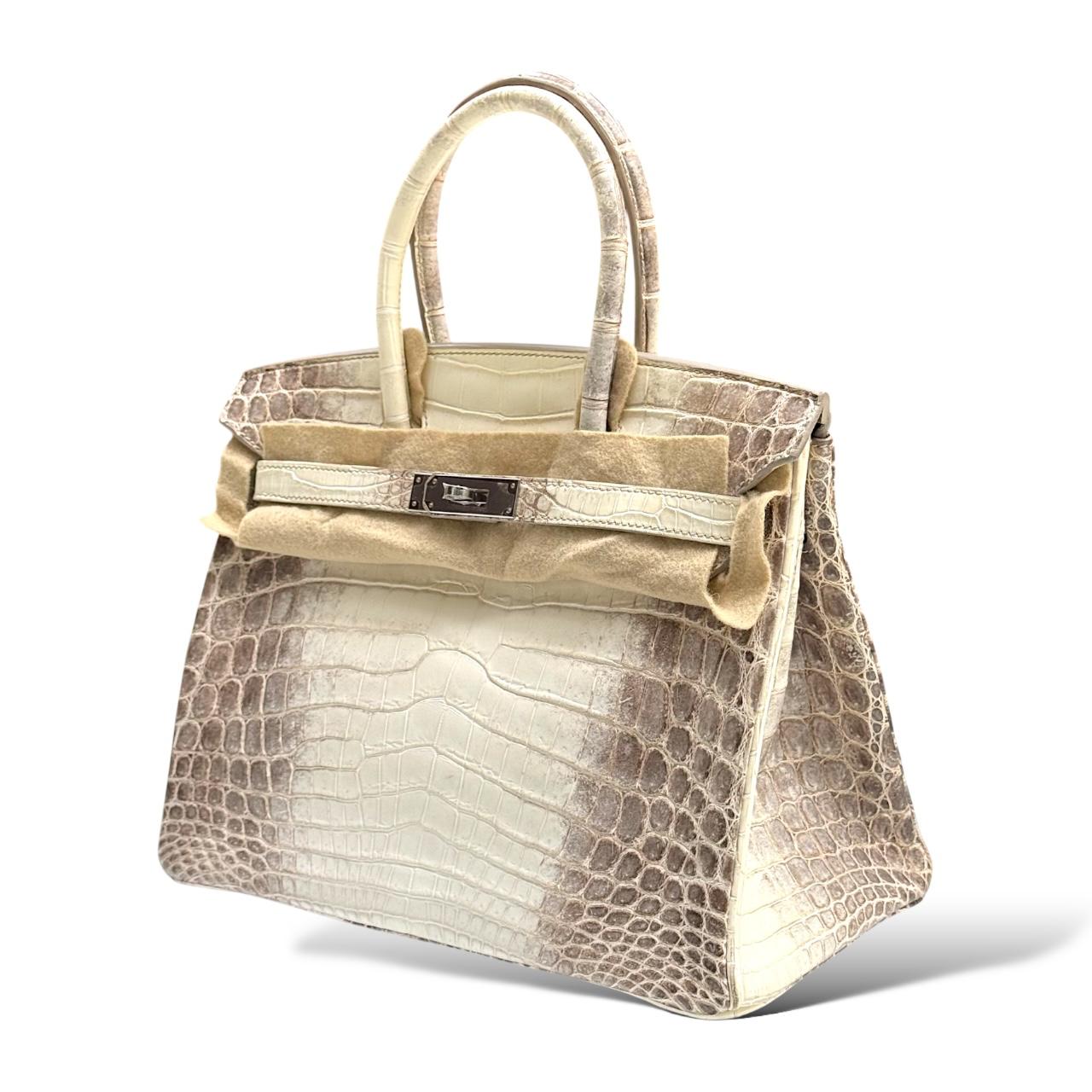 The Hermès Birkin 30 Himalaya PHW is one of the most coveted luxury handbags in the world. Crafted from rare Nile crocodile skin, it features a stunning gradient that fades from smoky gray to pearly white, resembling the Himalayan mountains. The “30” denotes its 30 cm size, and “PHW” stands for Palladium Hardware, adding a sleek silver-toned finish to this ultra-exclusive piece.