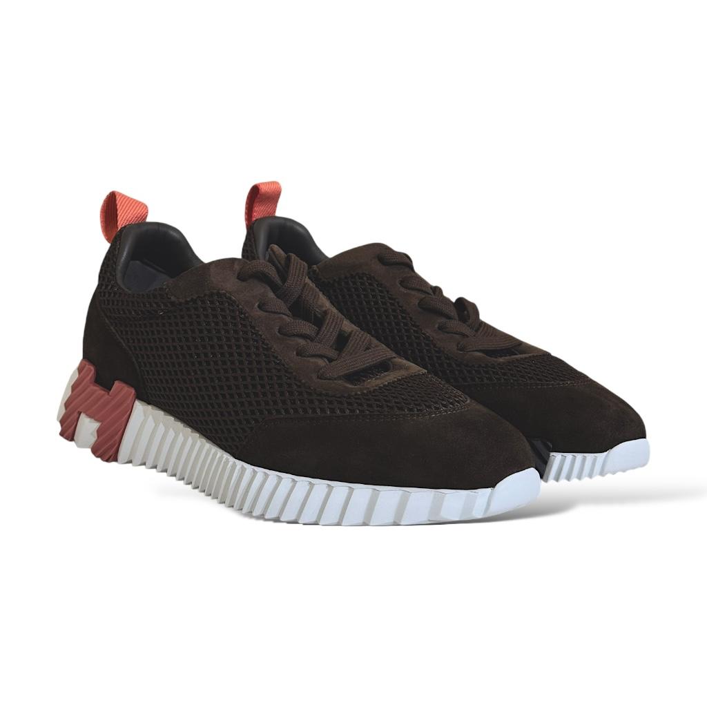 The Hermès Bouncing Sneakers are a dynamic fusion of luxury and sport, embodying both style and function. Designed with a modern, chunky silhouette, these sneakers stand out for their bold design and premium craftsmanship. Made from a combination of high-quality leather, suede, and technical fabrics, the Bouncing sneakers offer durability and comfort. The distinctive thick sole not only provides excellent cushioning and support but also adds a trendy, street-style edge to the design.