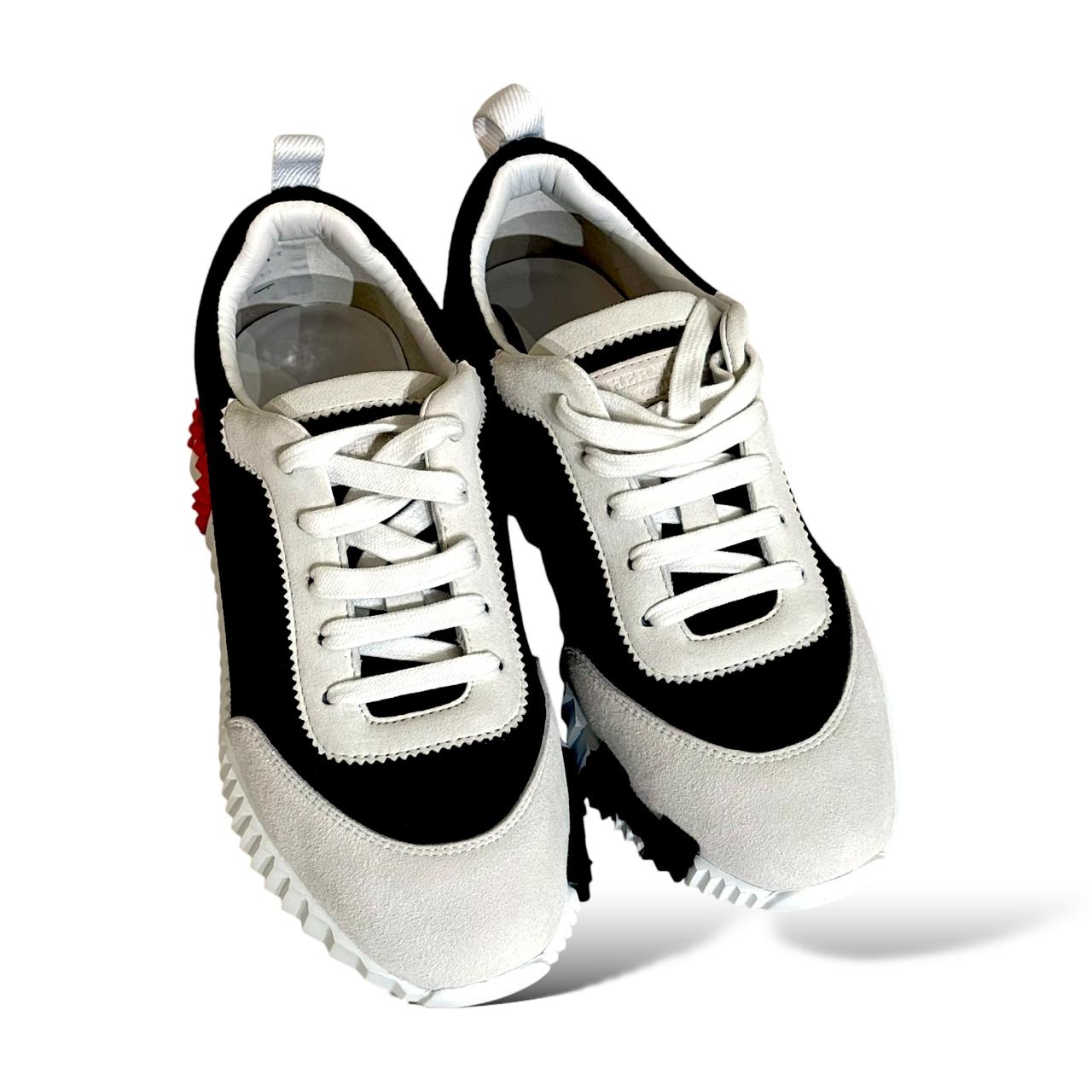 Hermes Bouncing Sneakers in black mesh with a white sole and vibrant orange details offer the perfect fusion of style and comfort. These sneakers boast a modern and sporty design with breathable black mesh. Step into these sneakers to elevate your casual looks with a dash of luxury and a burst of dynamic energy.