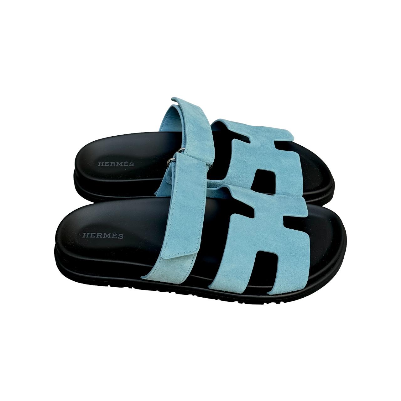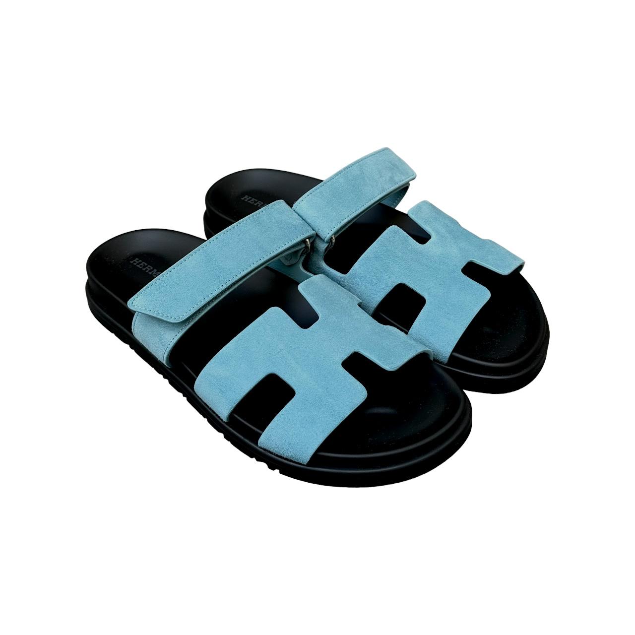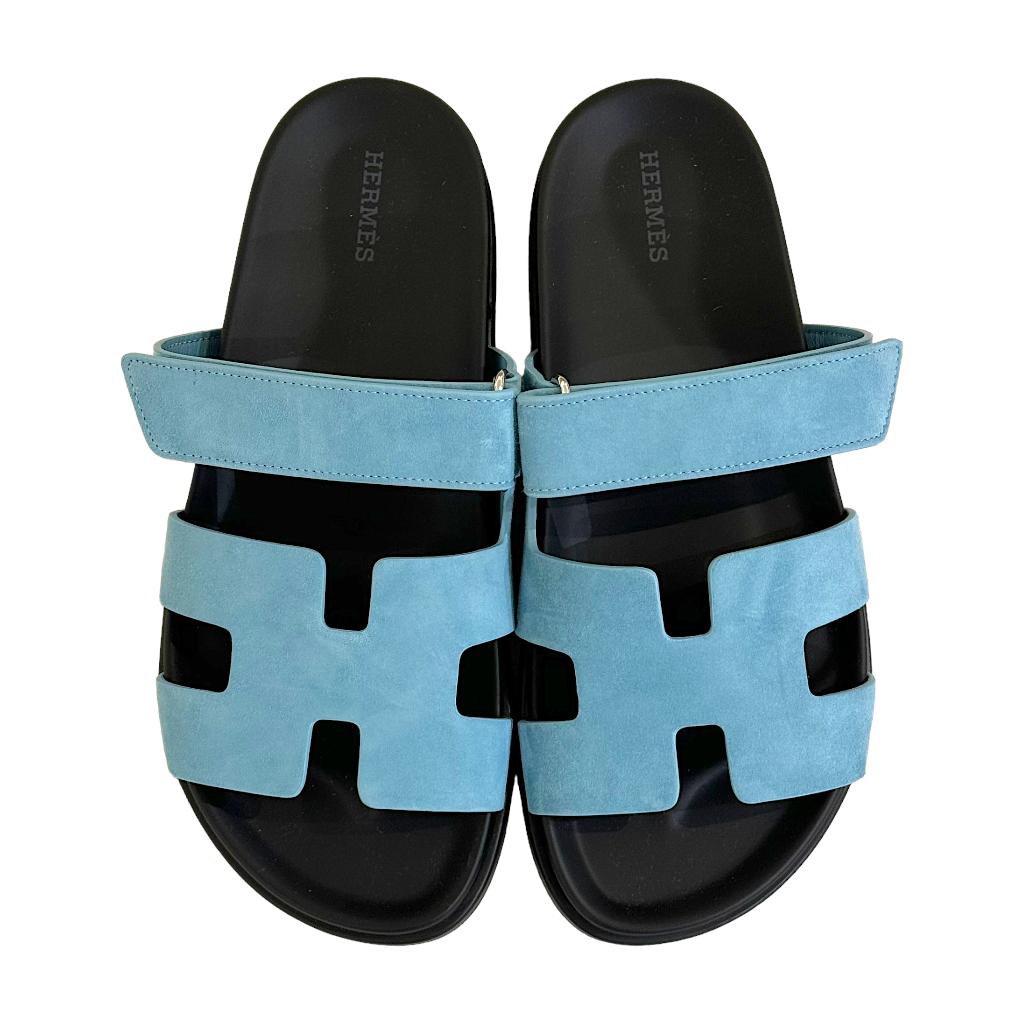 The suede material offers a soft, velvety texture that enhances comfort while exuding a sense of refined luxury. With a sleek and minimalist design, the Hermes Chypre sandals provide both aesthetic appeal and practical wearability. Perfect for both casual and dressier occasions, these sandals are a must-have addition to any fashion-forward wardrobe, showcasing Hermes’ timeless elegance and superior quality.