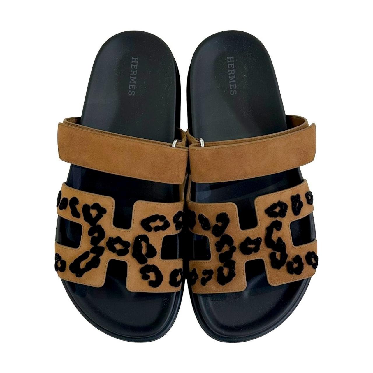 Indulge in the epitome of luxury and style with the Hermès Chypre sandals. Crafted in these exquisite sandals feature a stunning combination of Brun Fumé, Noir Suede