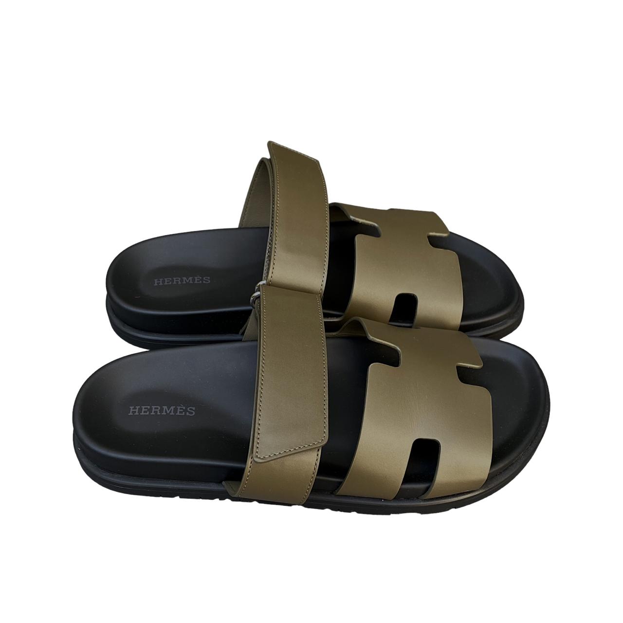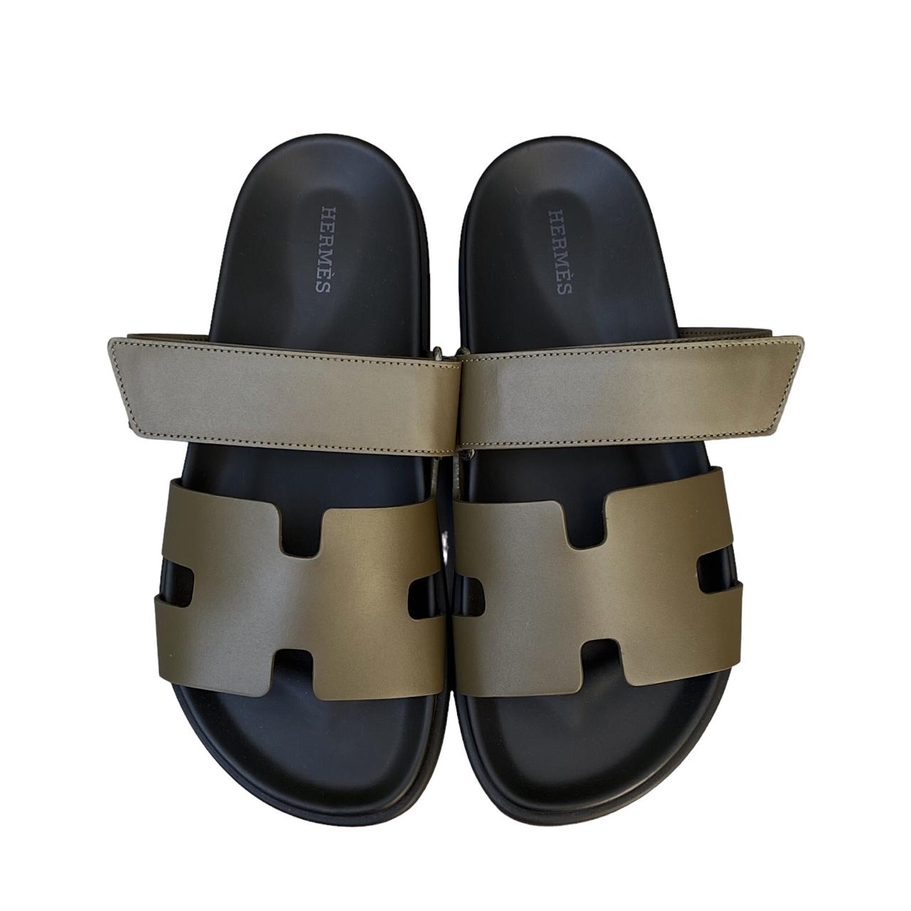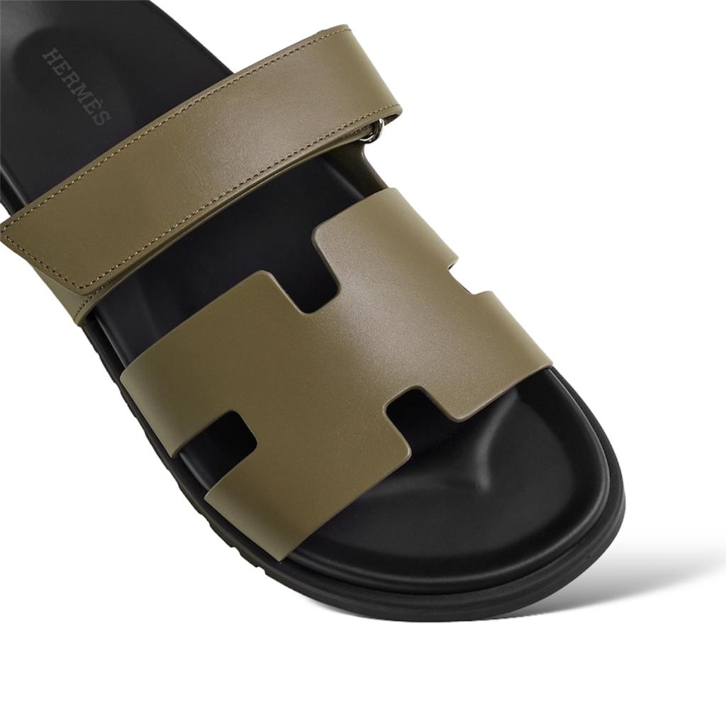 Dive into the world of sophistication and grace with the Hermes Chypre sandals in khaki green are a true testament to timeless elegance and impeccable craftsmanship.