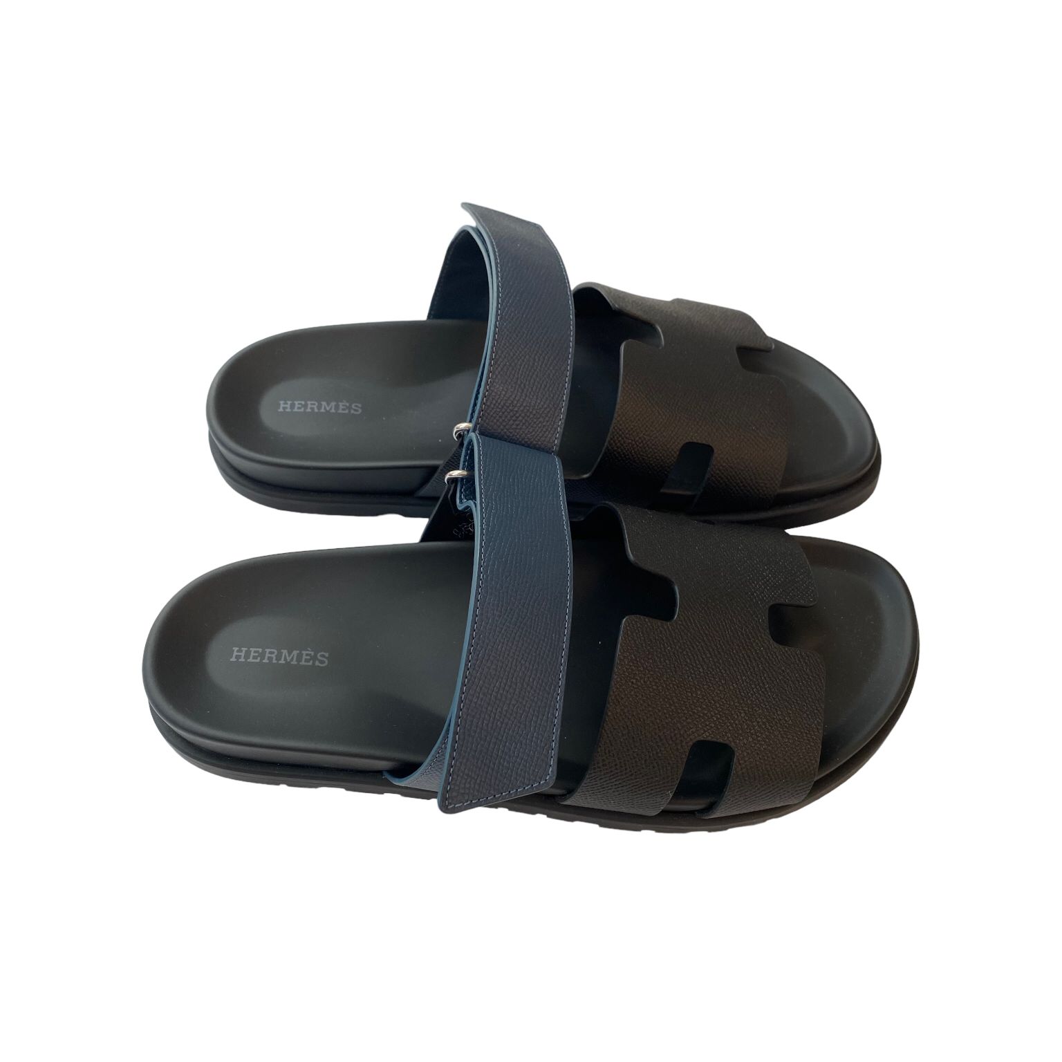 Dive into the world of sophistication and grace with the Hermes Chypre sandals in black and blue. These sandals are a true testament to timeless elegance and impeccable craftsmanship.