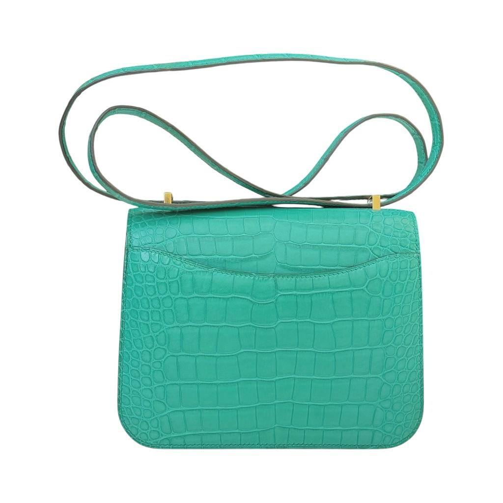 The Hermès Constance Mini in Vert Jade Shiny Crocodile Leather with Gold Hardware (GHW) is a true symbol of luxury and refinement, perfect for collectors and fashion enthusiasts.