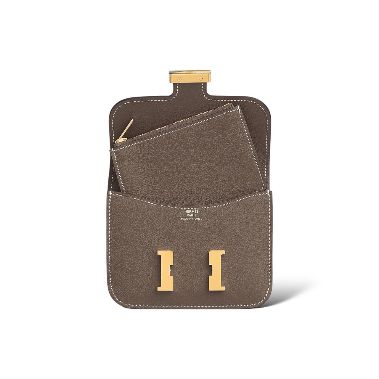 The Hermès Constance Slim is a sleek and elegant variation of the iconic Constance bag, designed for those who appreciate a minimalist yet luxurious accessory. This slim version retains the signature elements of the classic Constance, including the bold “H” clasp, typically made of polished metal like gold or palladium, which serves as both a functional and stylish centerpiece.