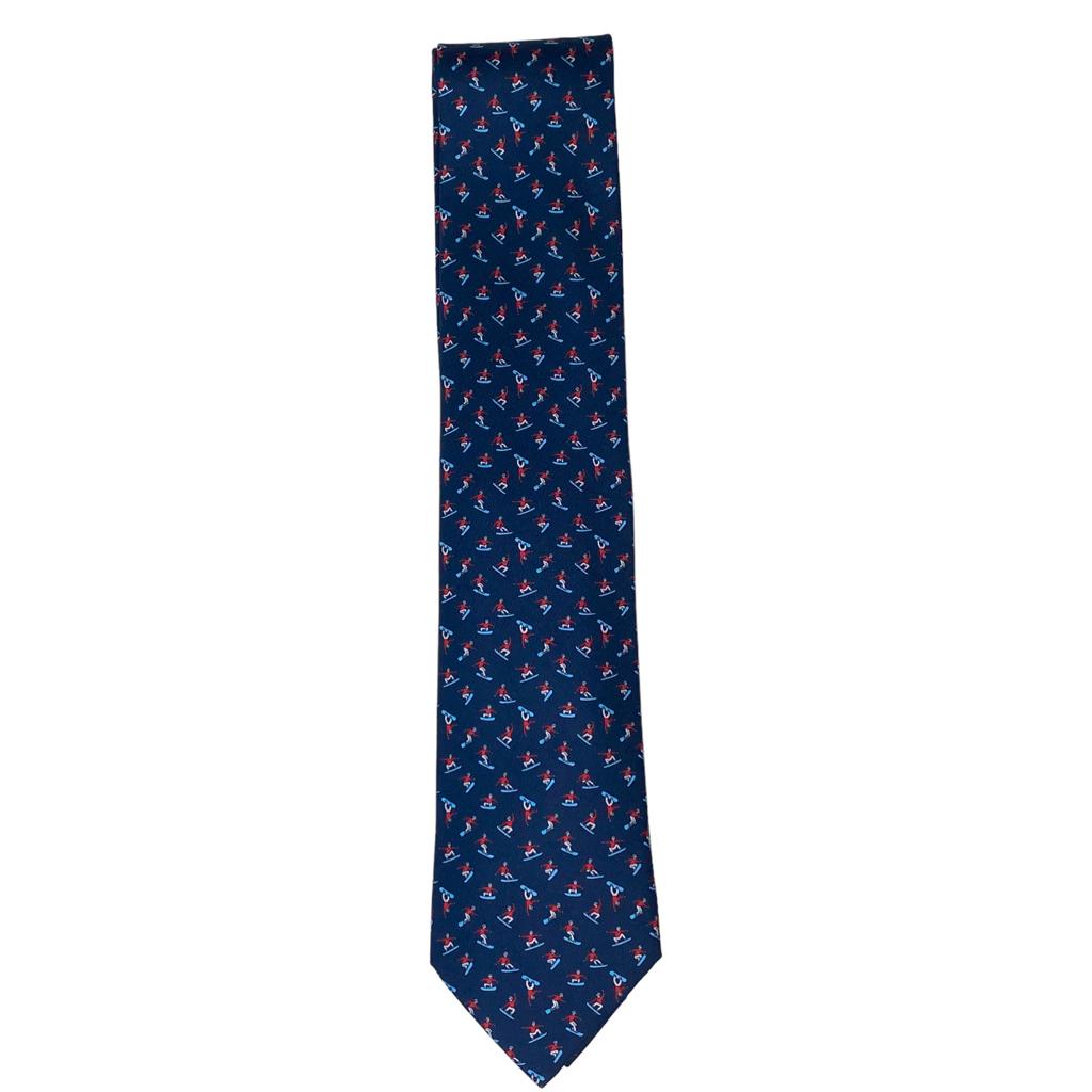 This tie bears the distinctive Hermes craftsmanship, featuring a captivating Double Animee Snowpark design. Its intricate pattern is a testament to the brand’s commitment to creativity and innovation in fashion.