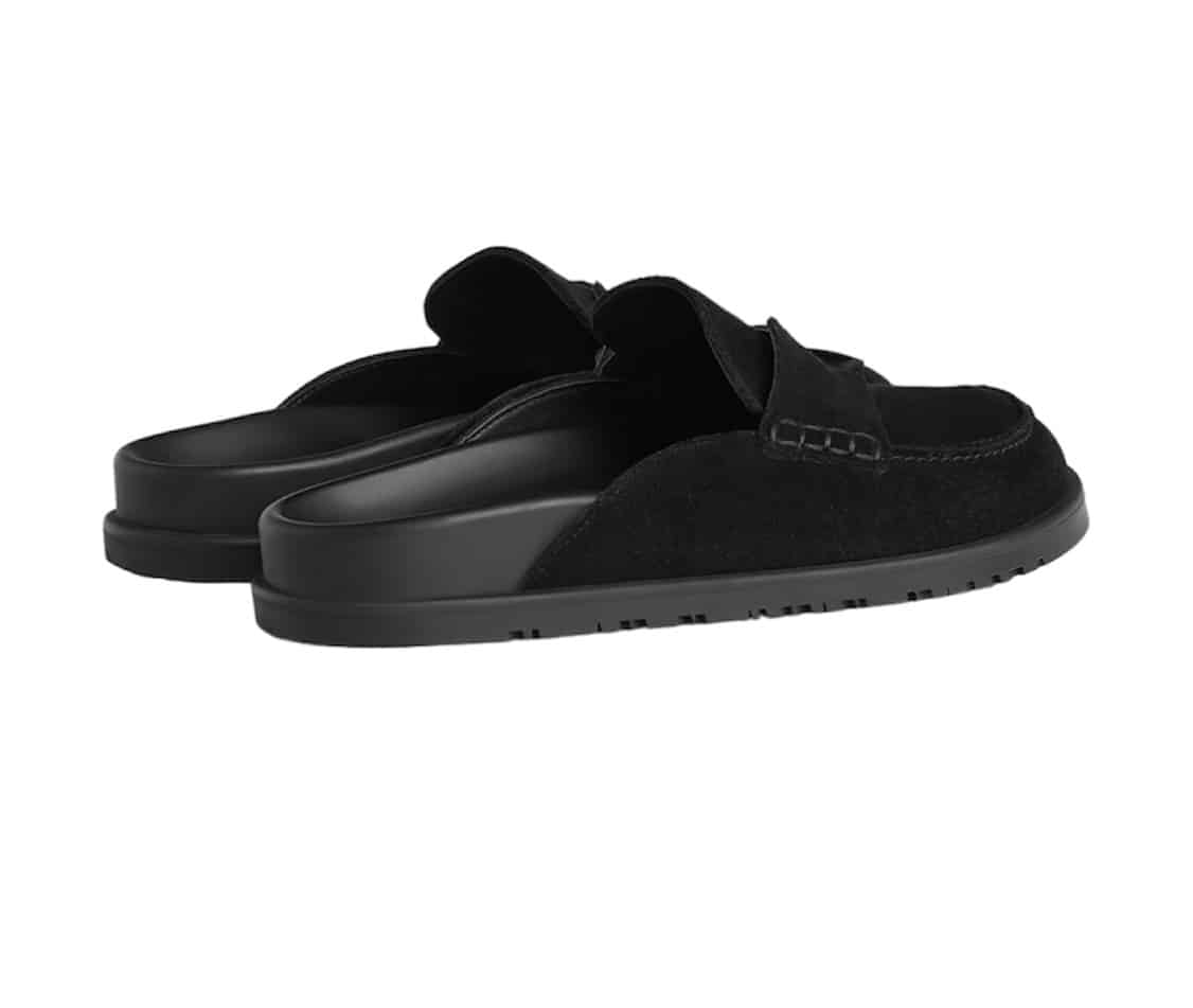 Experience contemporary comfort and style with the Hermes Go Mule in luxurious black suede. This suede calfskin mule features the iconic “H” cut-out detail, adding a touch of timeless sophistication to your ensemble. Elevate your fashion game with this modern and comfortable footwear choice.