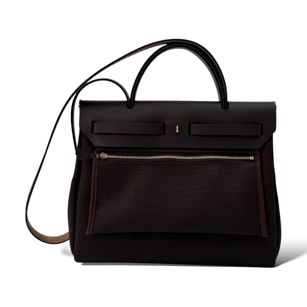 A stylish blend of elegance and practicality, the Hermès Herbag 31 is a versatile everyday companion. Crafted from durable canvas with smooth leather trim, this structured yet lightweight bag features the iconic Clou de Selle closure and a top handle with a removable shoulder strap for hands-free wear. With its classic silhouette and interchangeable body design, the Herbag 31 offers timeless sophistication and functionality—perfect for both casual and polished looks.