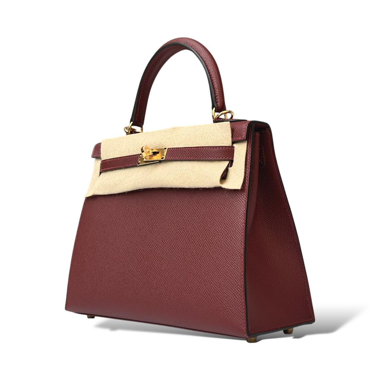 The Hermès Kelly 25 in Rouge H Epsom Leather with Gold Hardware (GHW) is a classic and sophisticated piece that embodies timeless elegance. Crafted from durable Epsom leather, this bag features the deep, rich Rouge H hue—a signature Hermès color that exudes refinement and versatility.