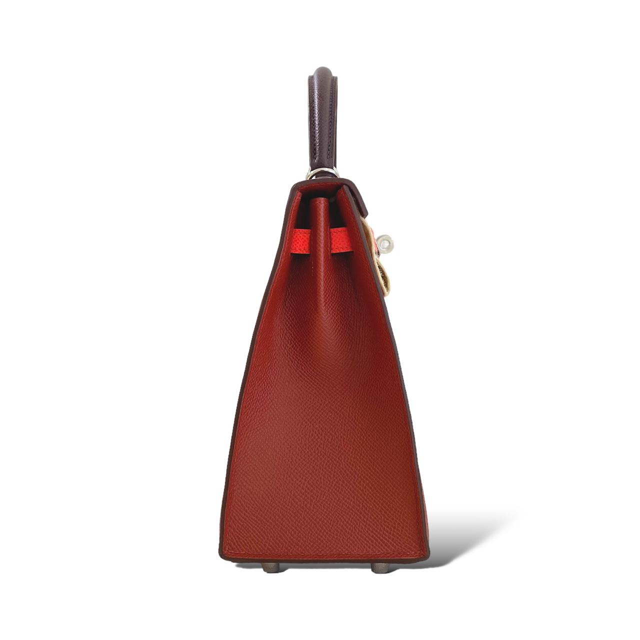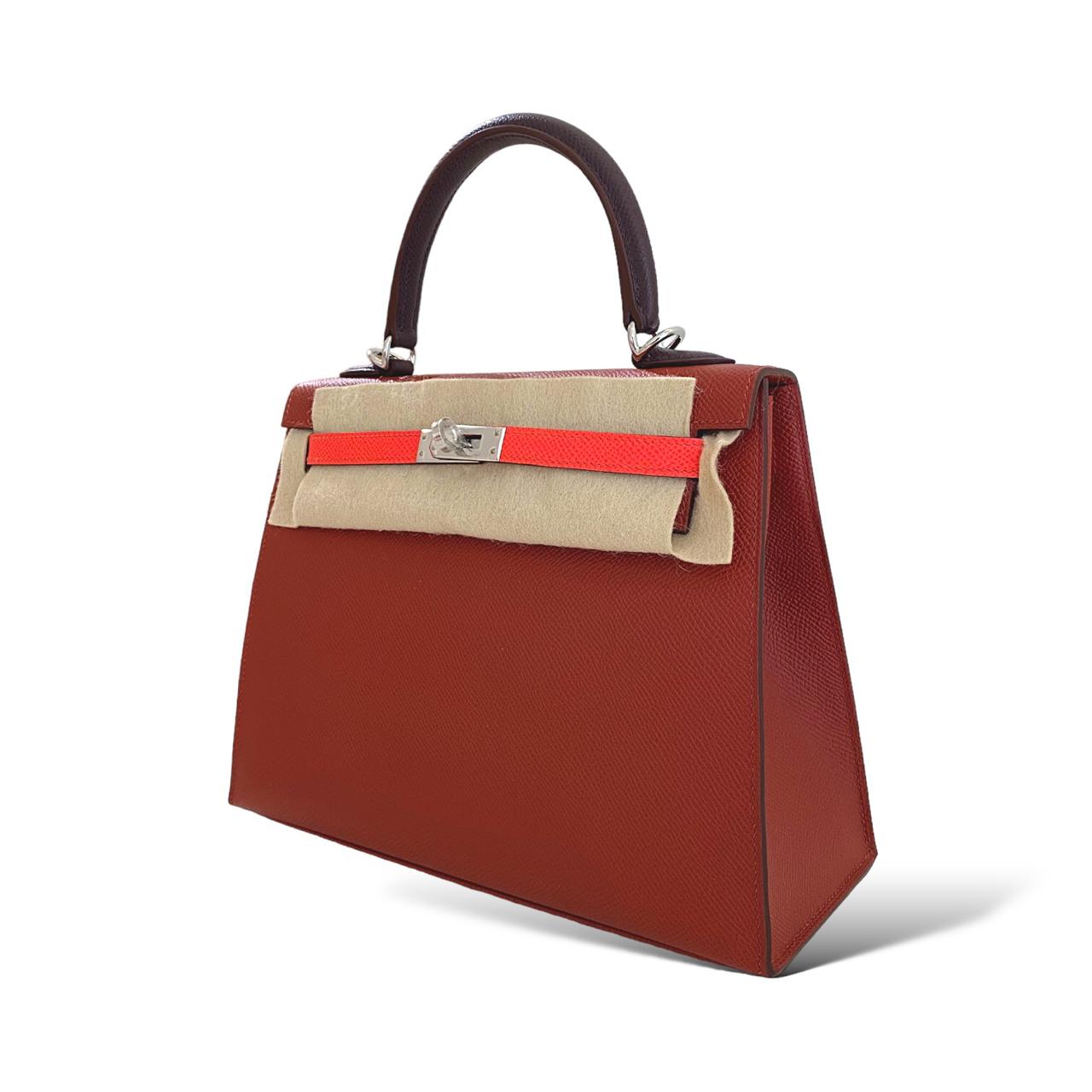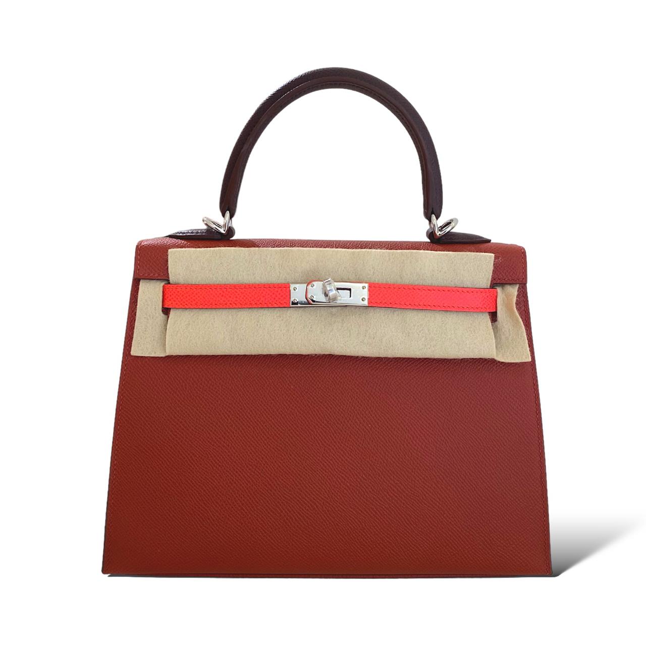 The Rouge Venetian, Rose texas, Rouge Sellier colors beautifully complement each other, creating a visually striking appearance. Adorned with Palladium hardware, including the iconic Kelly turn-lock closure, this handbag exudes timeless allure. With its compact size and versatile design, the Hermes Kelly 25 is an exquisite accessory for any occasion, adding a touch of luxury to your ensemble.