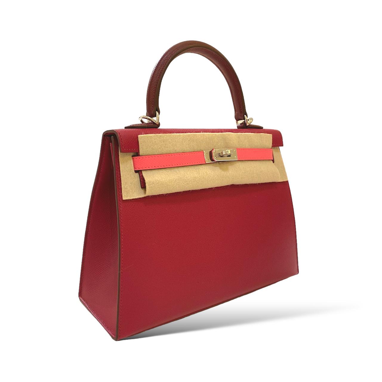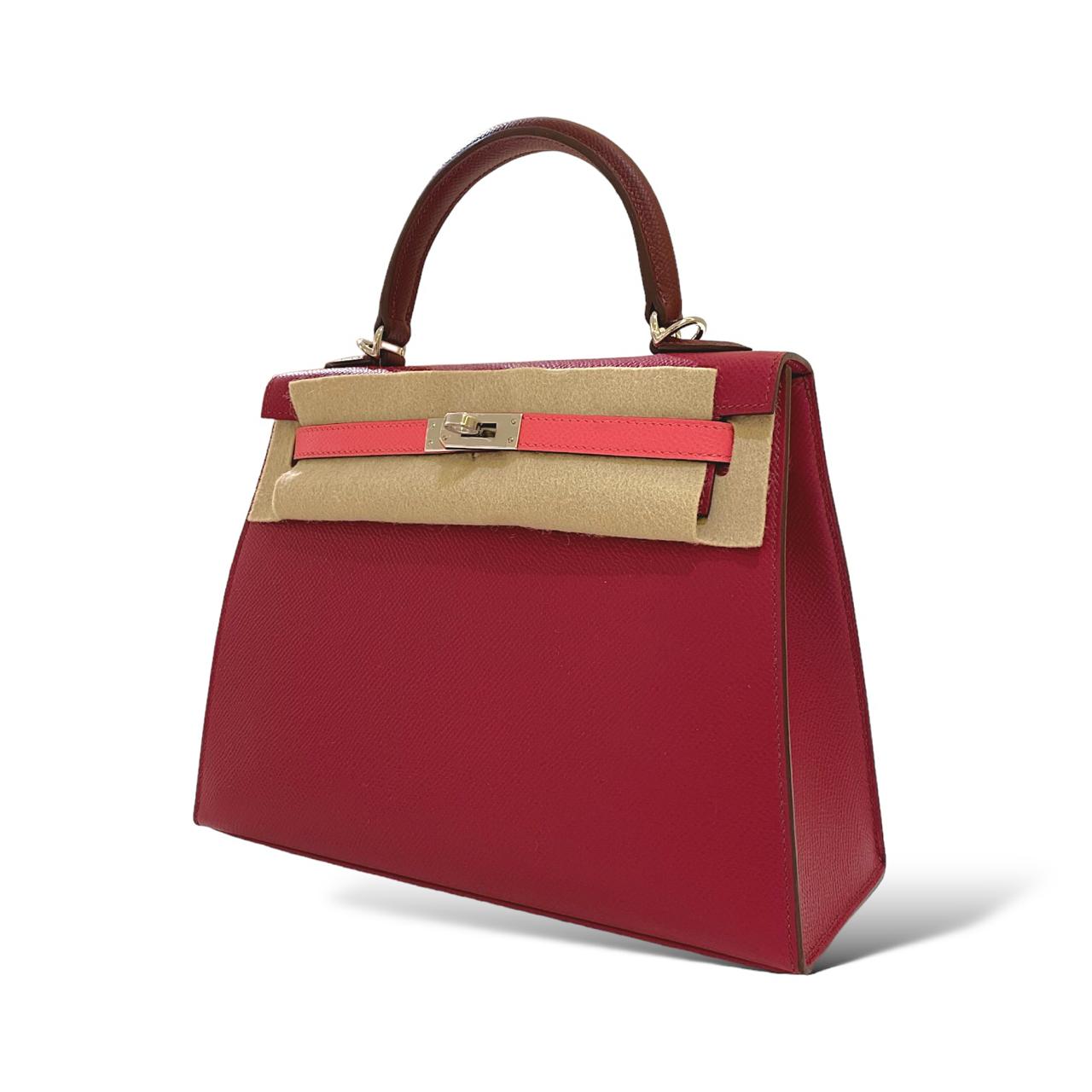 Introducing the Hermes Kelly 25 in Rubis, Rose Azalee, and Rouge Epsom Leather with Palladium Hardware (PHW). This stunning handbag showcases a vibrant color combination, perfect for making a bold statement. Crafted from luxurious Epsom leather, known for its durability and distinctive texture, this Kelly 25 exudes elegance and sophistication.