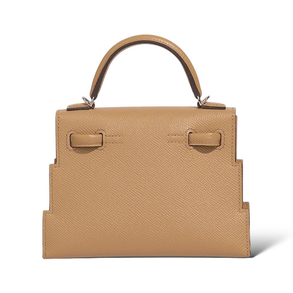 The Hermes Kelly Doll Picto Chai/Mauve Sylvestre/Bleu Celeste Epsom with Palladium Hardware (PHW) is a whimsical and playful twist on the classic Kelly bag, designed to bring a sense of fun and creativity to any collection. Known as the “Kelly Doll” or “Quelle Idole,” this bag features charming details like articulated arms, legs, and a smiling face, which turn the iconic Kelly silhouette into an adorable character.