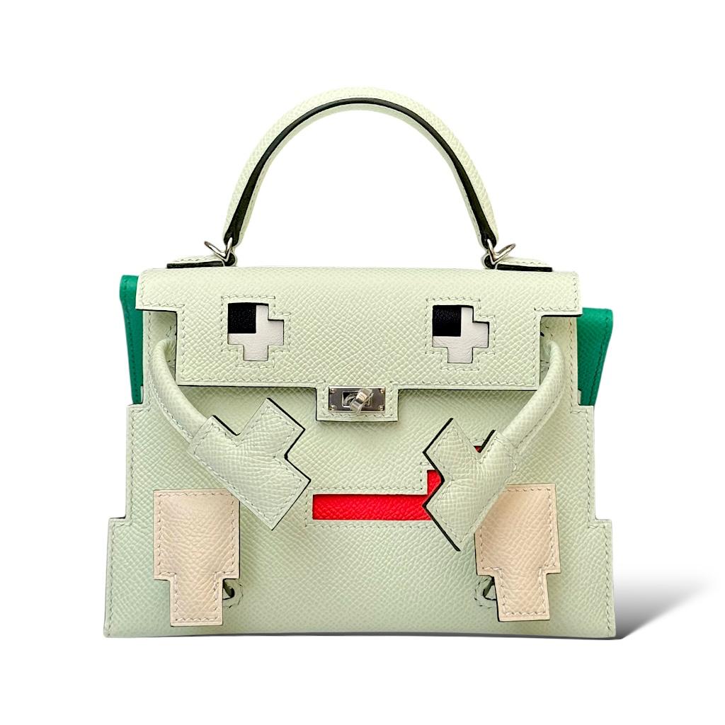 The Hermès Kelly Doll Picto in Vert Fizz, Nata, Rose Texas, and Vert Jade with Palladium Hardware (PHW) is a whimsical and playful twist on the classic Kelly bag, designed to bring a sense of fun and creativity to any collection. Known as the “Kelly Doll” or “Quelle Idole,” this bag features charming details like articulated arms, legs, and a smiling face, which turn the iconic Kelly silhouette into an adorable character.
