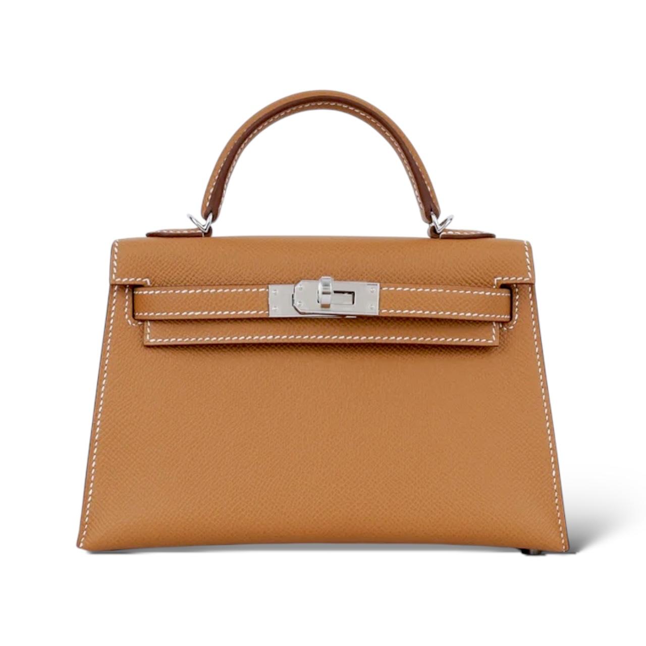 Elevate your style with the timeless allure of the Hermes Kelly Mini in radiant gold, adorned with Palladium hardware. A statement piece that blends sophistication with a touch of glamour. Make every outing an expression of luxury with this iconic accessory.