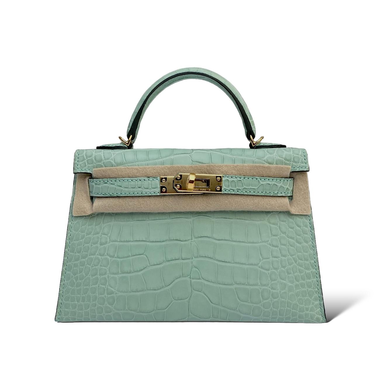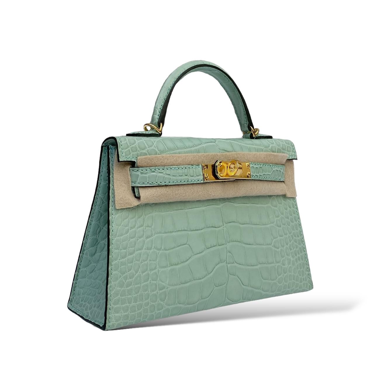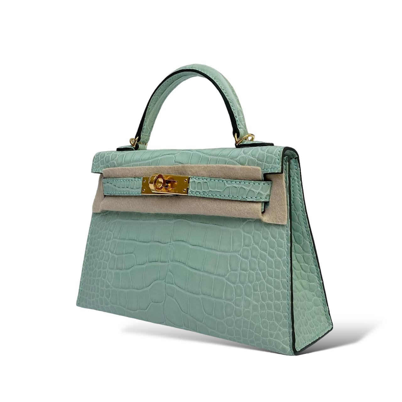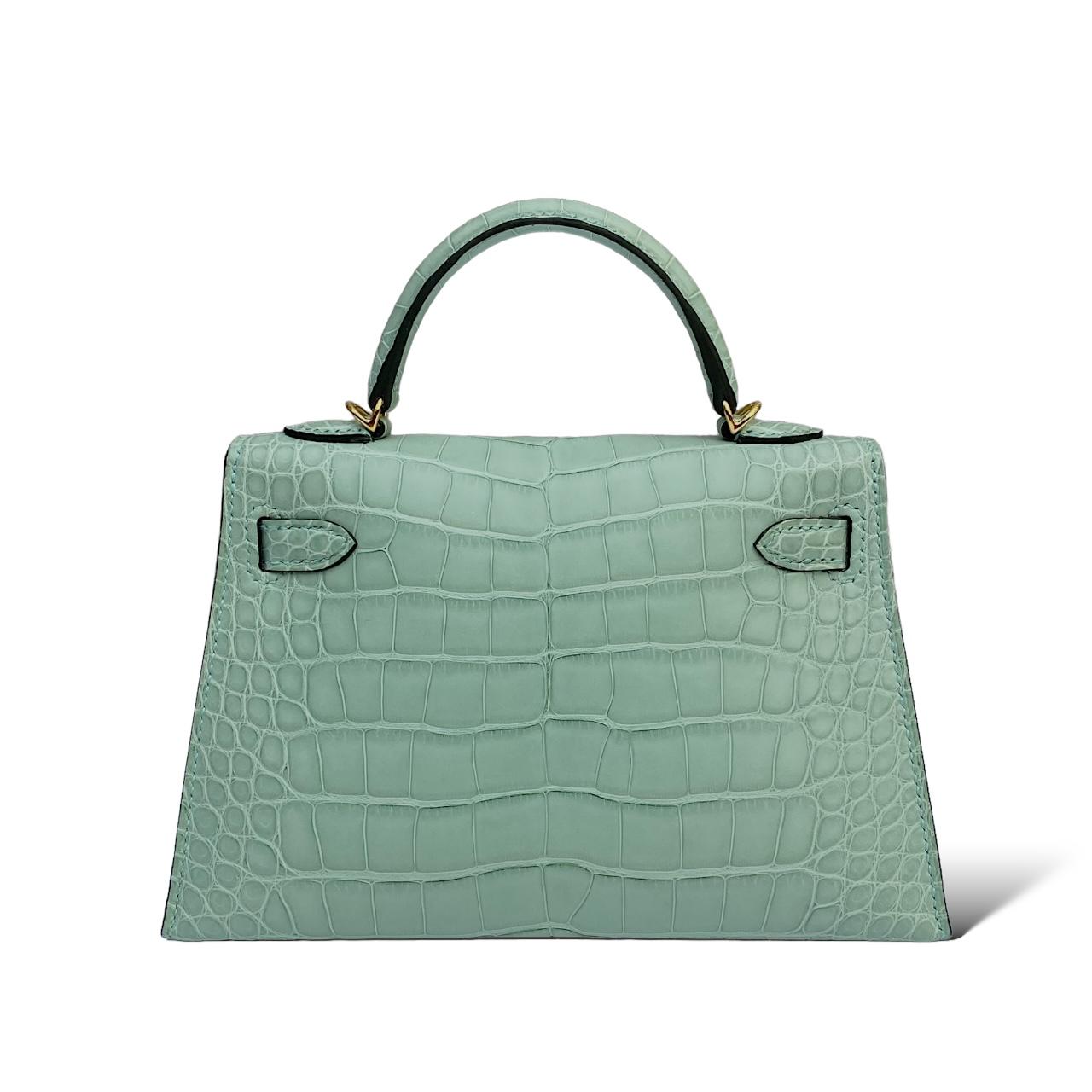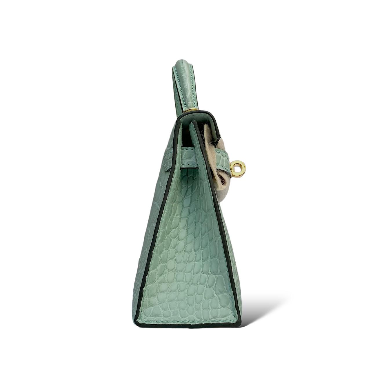 The Hermès Kelly Mini Sellier in Vert D’Eau Crocodile is a highly coveted luxury handbag, renowned for its exquisite craftsmanship and elegant design. Crafted from premium matte crocodile leather, it features a serene sea-green hue, complemented by sleek palladium hardware. The bag’s compact 20 cm size offers a structured silhouette, ideal for both day and evening wear.