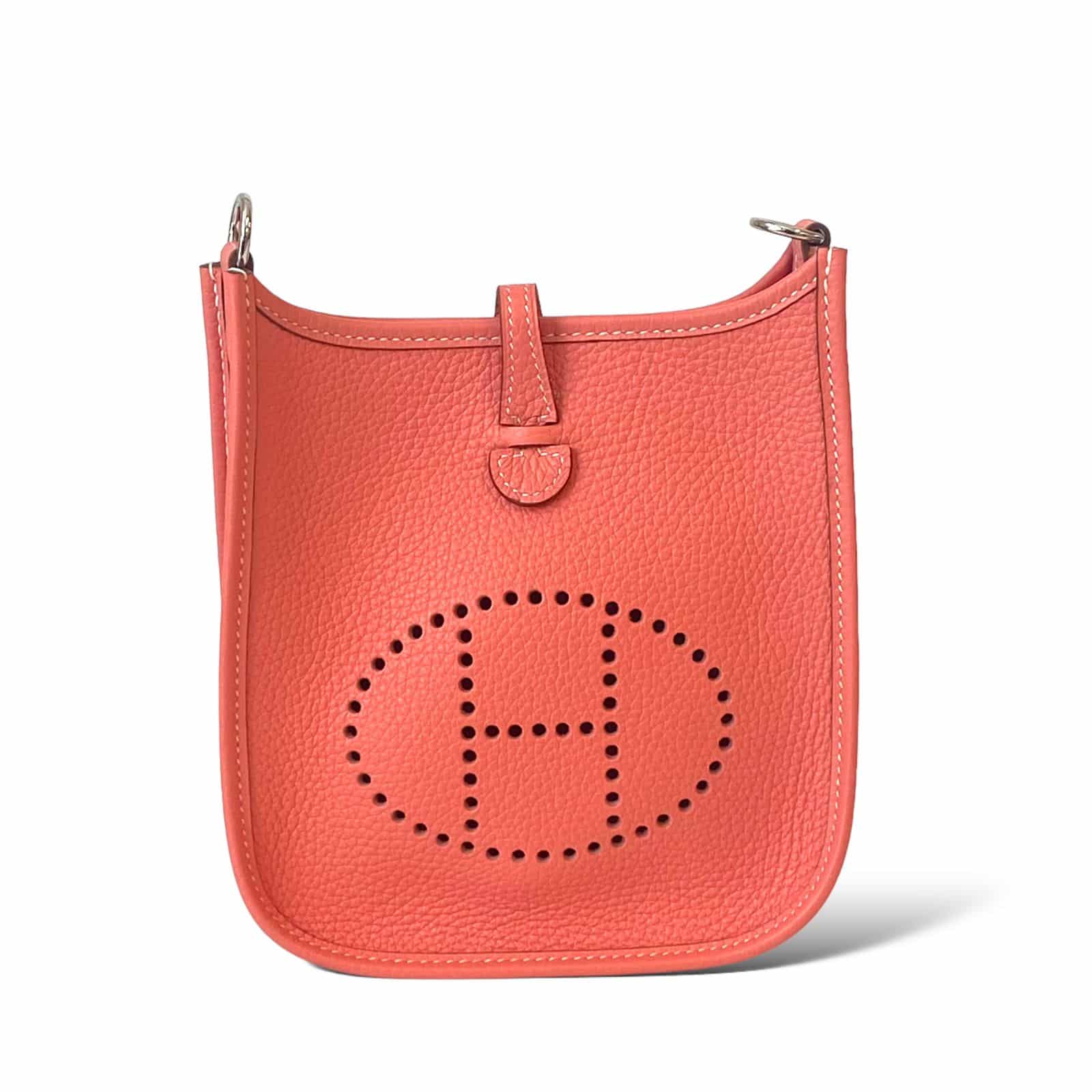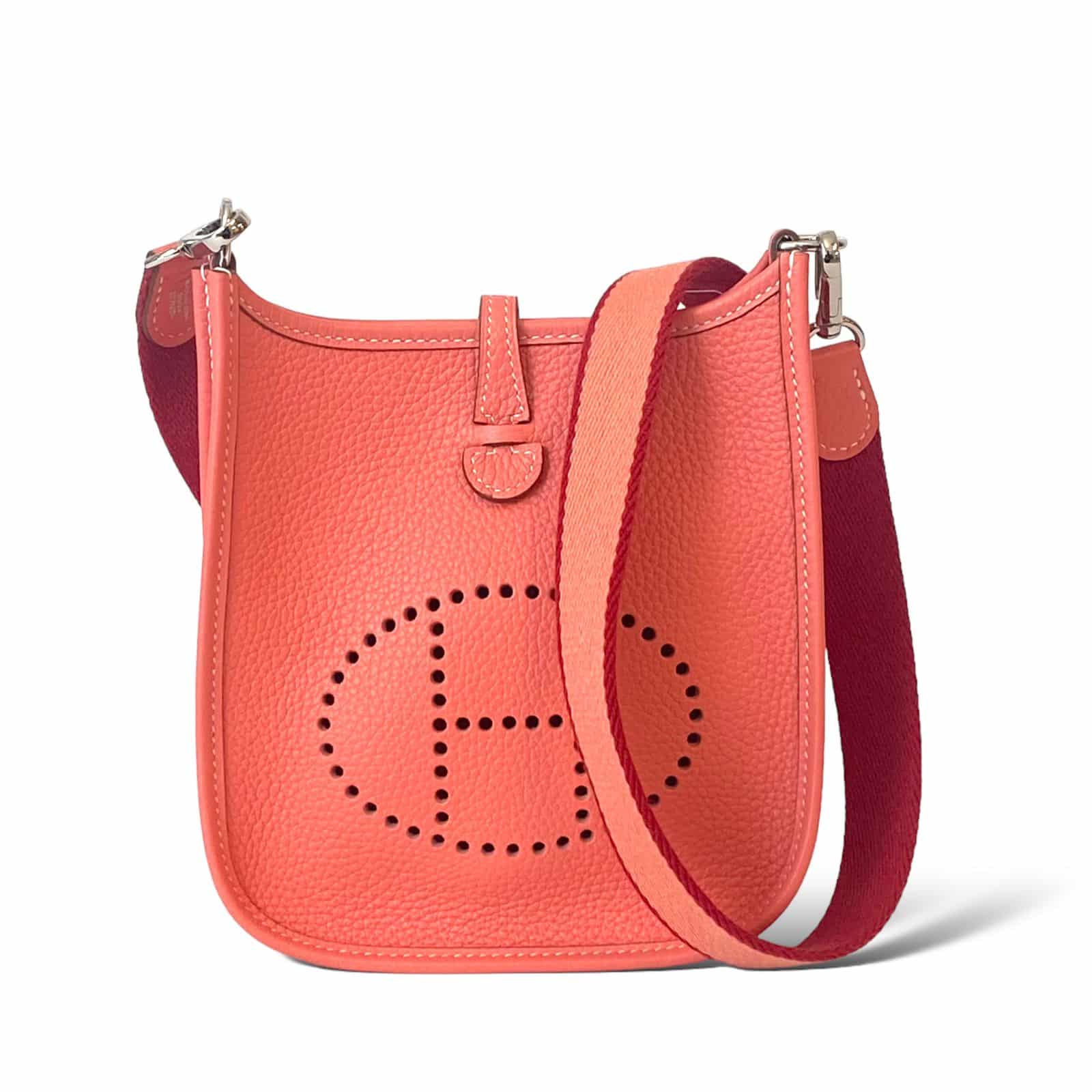 Expertly crafted to perfection, the Mini Evelyne Rouge Pivoine PHW features the iconic perforated “H” logo on its front, revealing a glimpse of the inner lining.