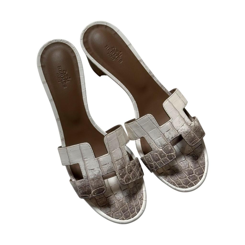 The Hermès Oasis Himalaya Croco is an exquisite sandal made from premium crocodile leather, featuring the iconic “Himalaya” gradient effect that transitions from light to dark tones. With its elegant design and luxurious craftsmanship, it offers both sophistication and comfort, making it a standout piece for high-end summer wear.