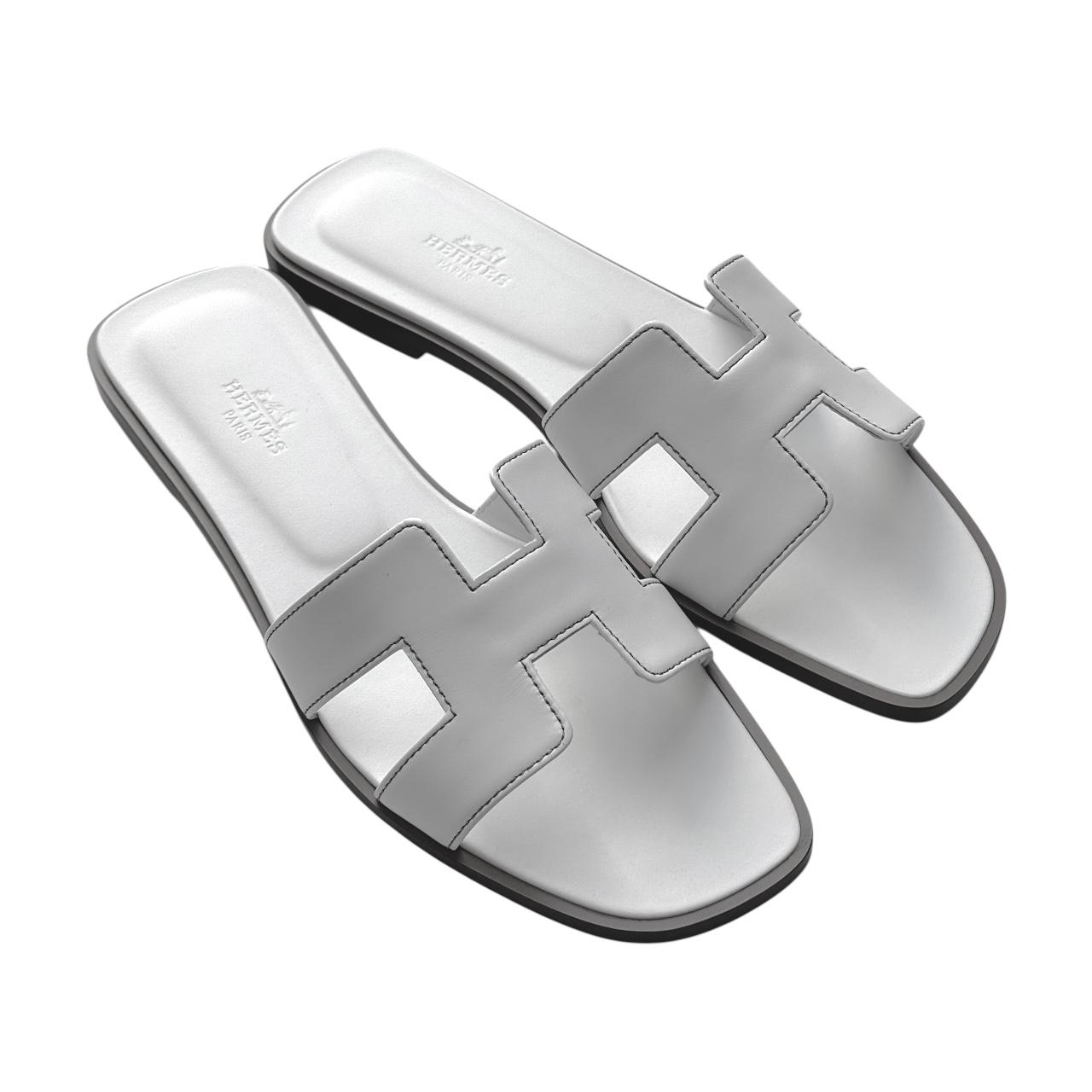 The Hermes Oran Sandals are a timeless classic, renowned for their simple yet elegant design. Crafted from high-quality leather, these sandals feature the iconic ‘H’ cut-out on the upper, which adds a touch of sophistication and brand recognition. The Oran Sandals are designed for comfort and style, making them perfect for casual outings and chic summer looks.