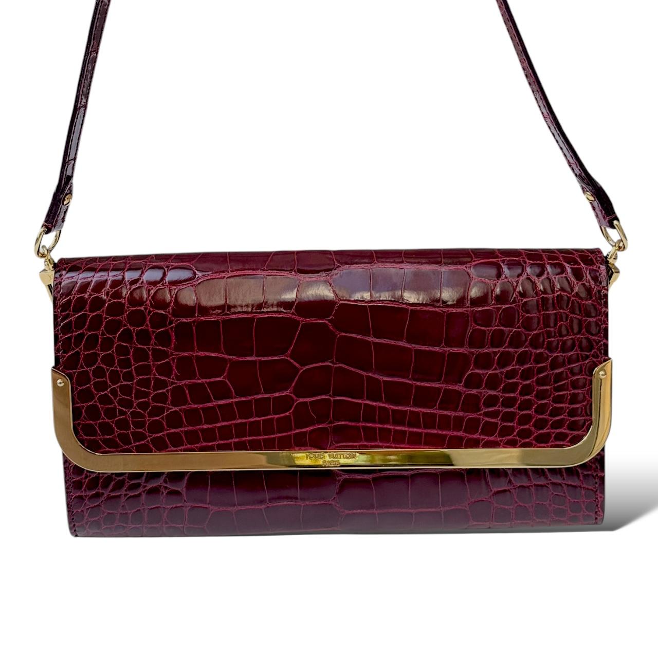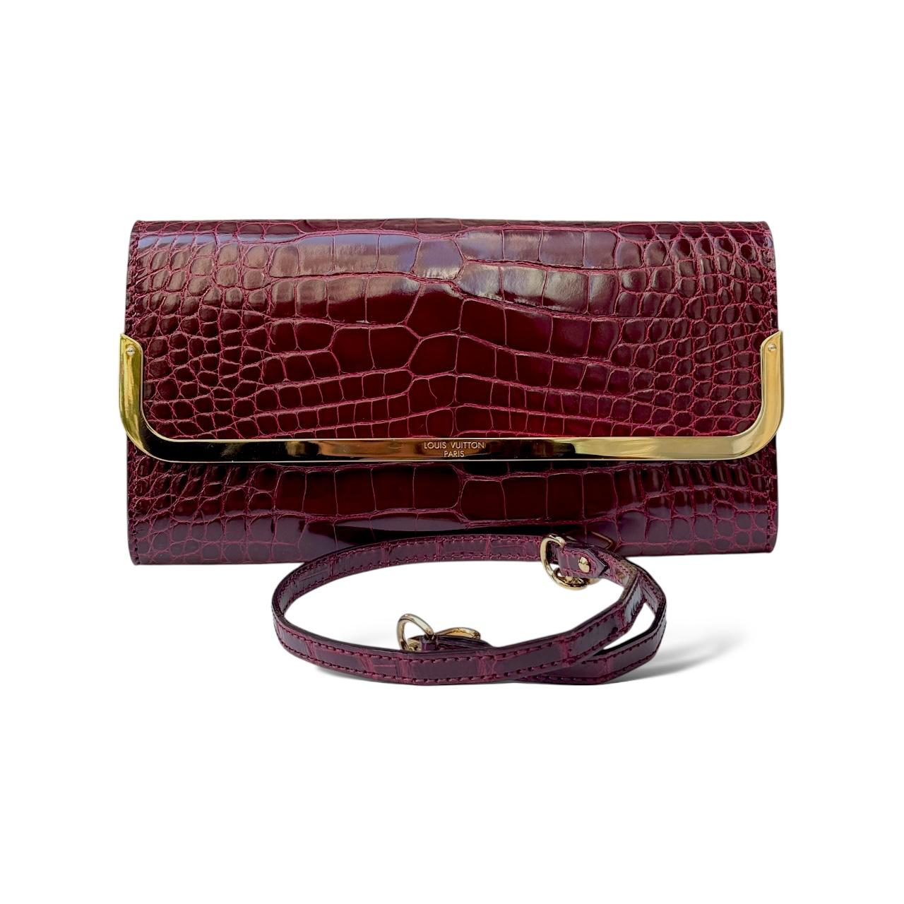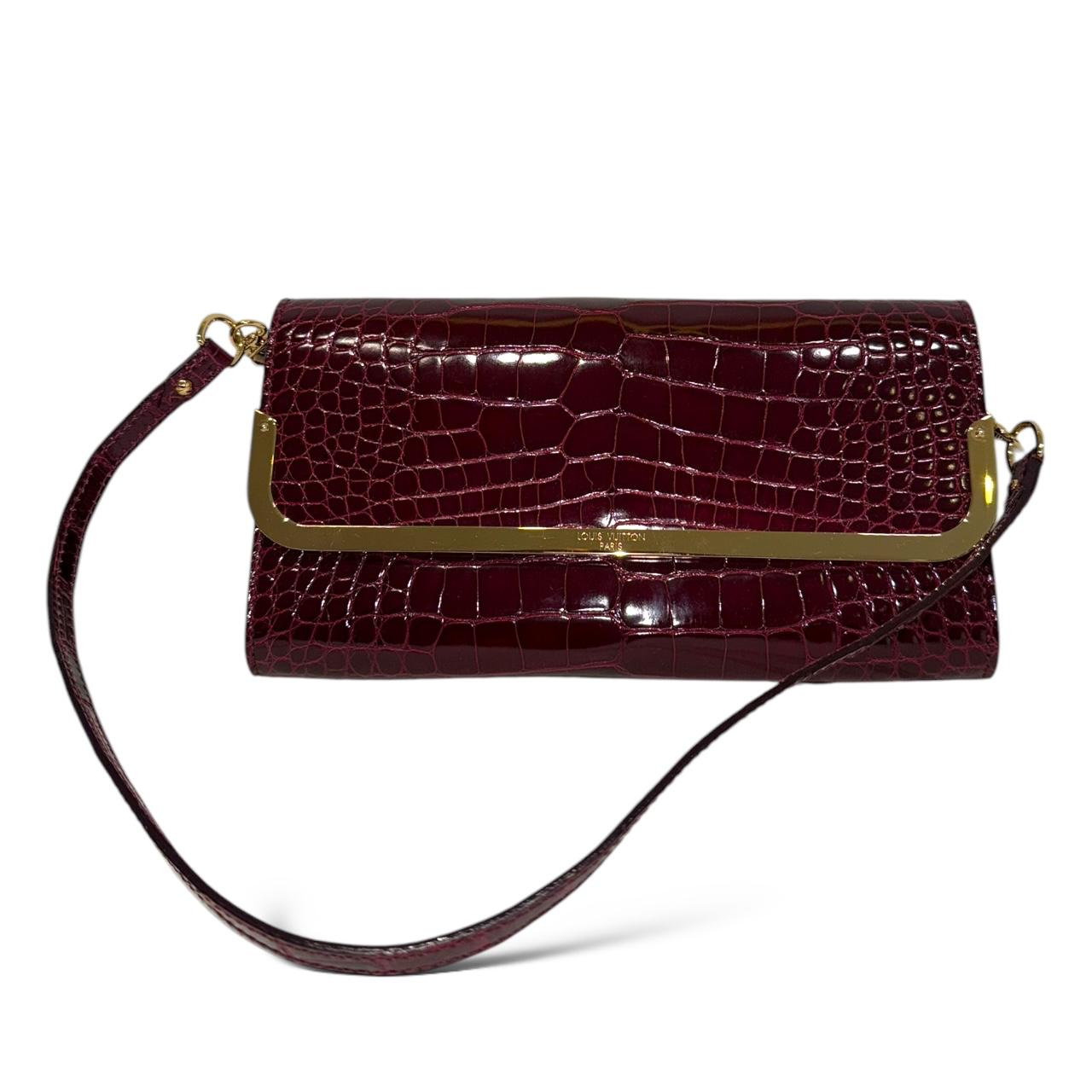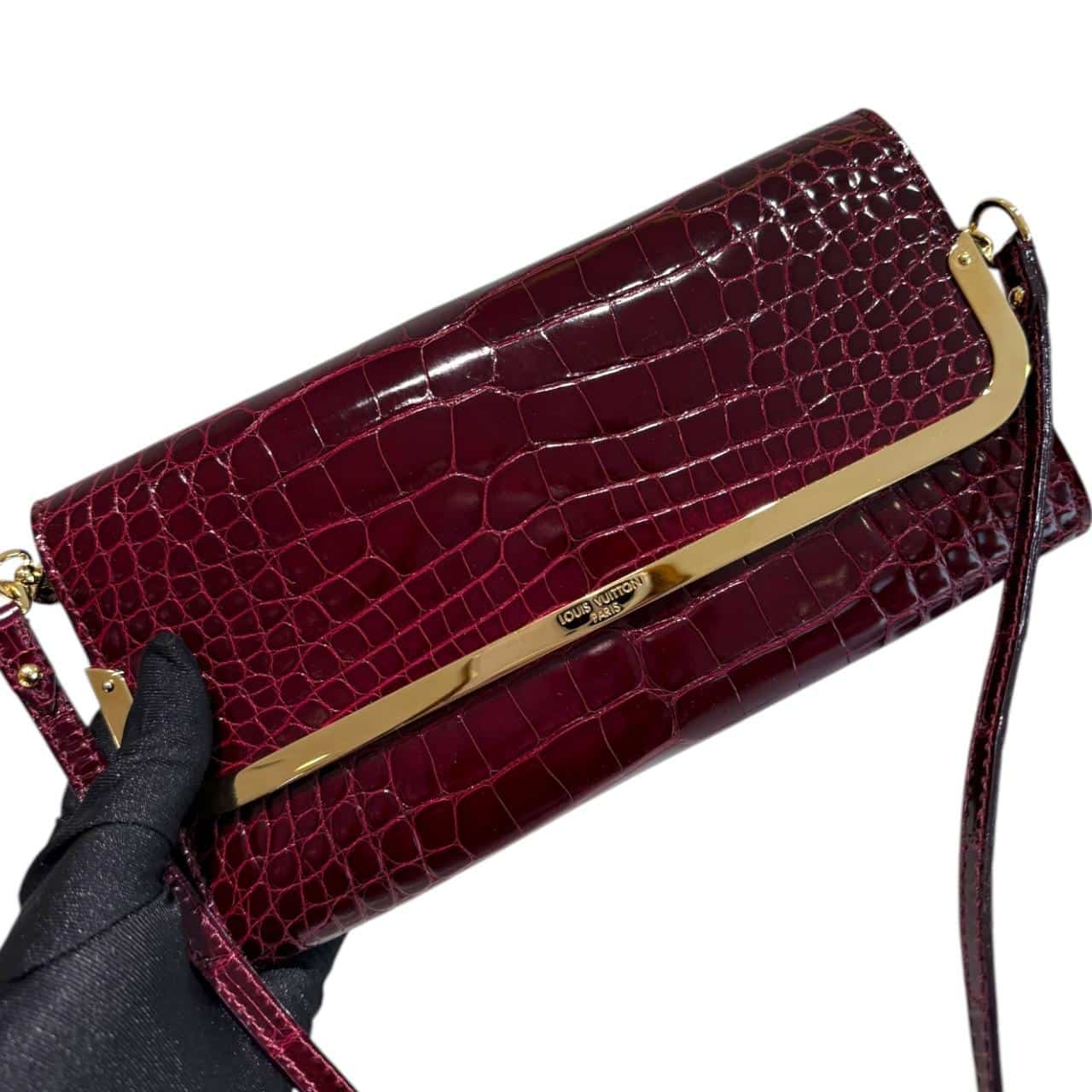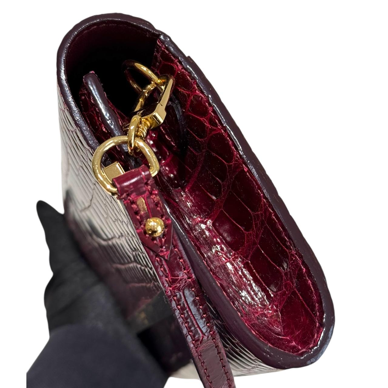 This sophisticated Louis Vuitton shoulder bag combines the brand’s iconic Monogram canvas with a luxurious burgundy croco-embossed leather accent. The bag features a sleek, structured silhouette with rich gold-tone hardware and a comfortable leather shoulder strap, making it perfect for both day-to-night wear.