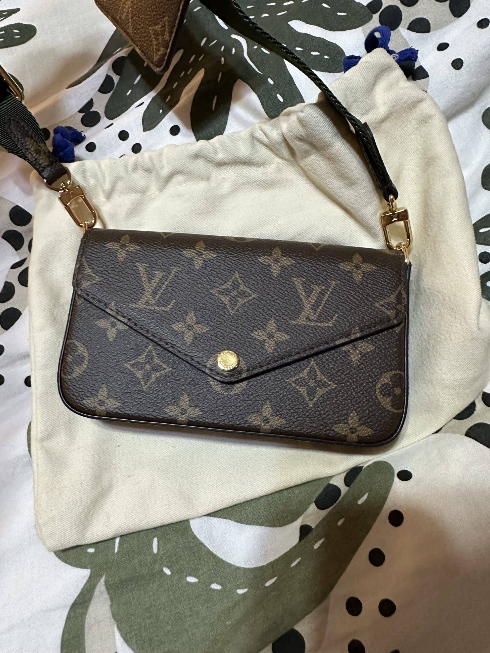 Louis Vuitton Monogram Felicie Strap to Go Cross Bag: A stylish and versatile accessory, the Monogram Felicie Strap to Go Cross Bag by Louis Vuitton combines iconic design with practicality. Crafted from the brand’s signature Monogram canvas, this compact bag features a removable strap, allowing it to be worn as a crossbody, shoulder bag, or clutch. The interior is thoughtfully designed with multiple compartments to organize essentials, making it perfect for day-to-evening wear. Finished with a gold-tone LV logo closure, the Felicie bag effortlessly blends luxury and functionality, making it a must-have piece for Louis Vuitton aficionados.