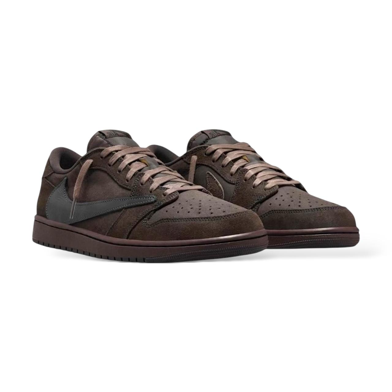 The Nike Velvet Brown x Travis Scott Dark Air Jordan 1 Low OG SP is a luxury streetwear staple that blends high-end materials, unique design elements, and collaborative culture, making it a must-have for sneaker enthusiasts and fans of Travis Scott’s fashion aesthetic.