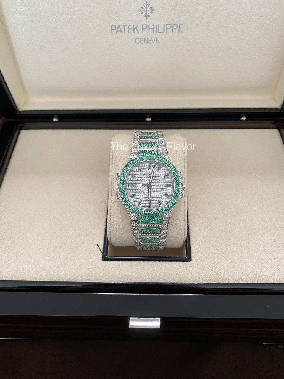 Patek Philippe Nautilus 35.2mm 7118/1453G Self-Winding Paved With Diamonds And Emerald