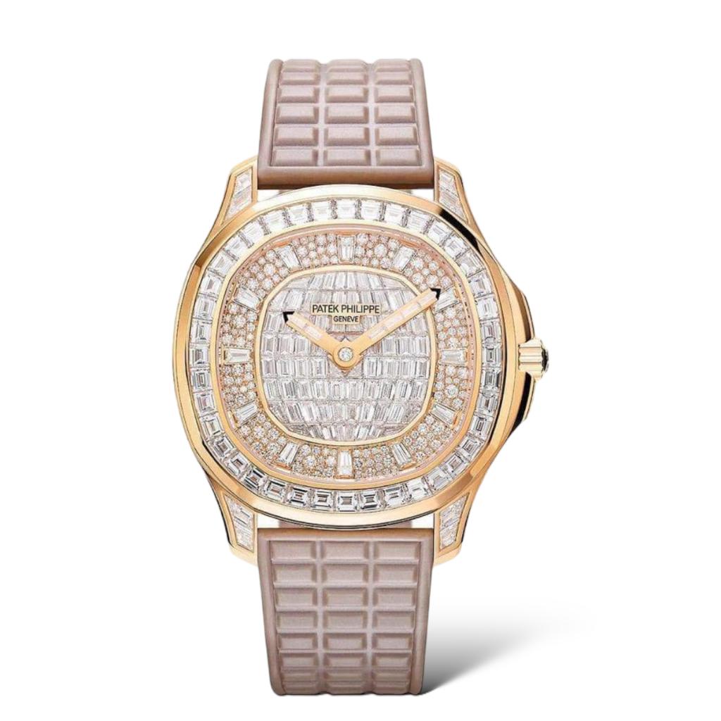 Powered by a high-precision automatic movement, this Aquanaut model promises accuracy and reliability. The comfortable and stylish beige rubber strap seamlessly integrates into the watch’s design, offering both durability and elegance.