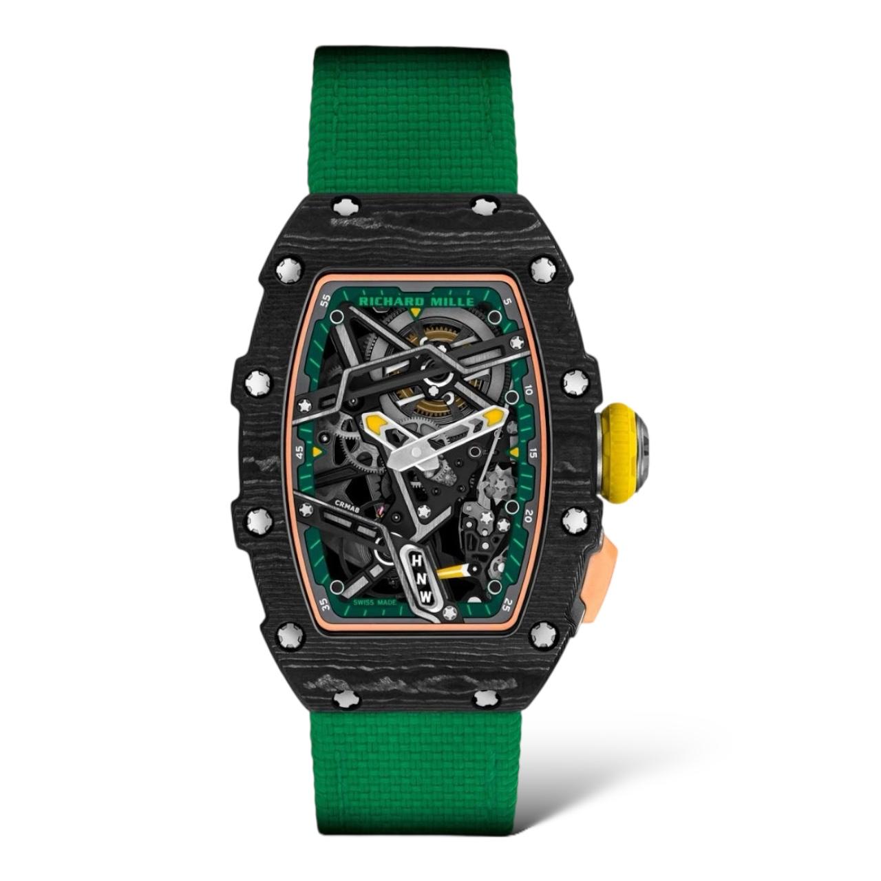 The Richard Mille RM 07-04 in Green and Black combines cutting-edge design with luxury craftsmanship. Its lightweight Quartz TPT® case and skeletonized movement ensure durability and precision. Bold yet elegant, this timepiece is a perfect blend of performance and style.