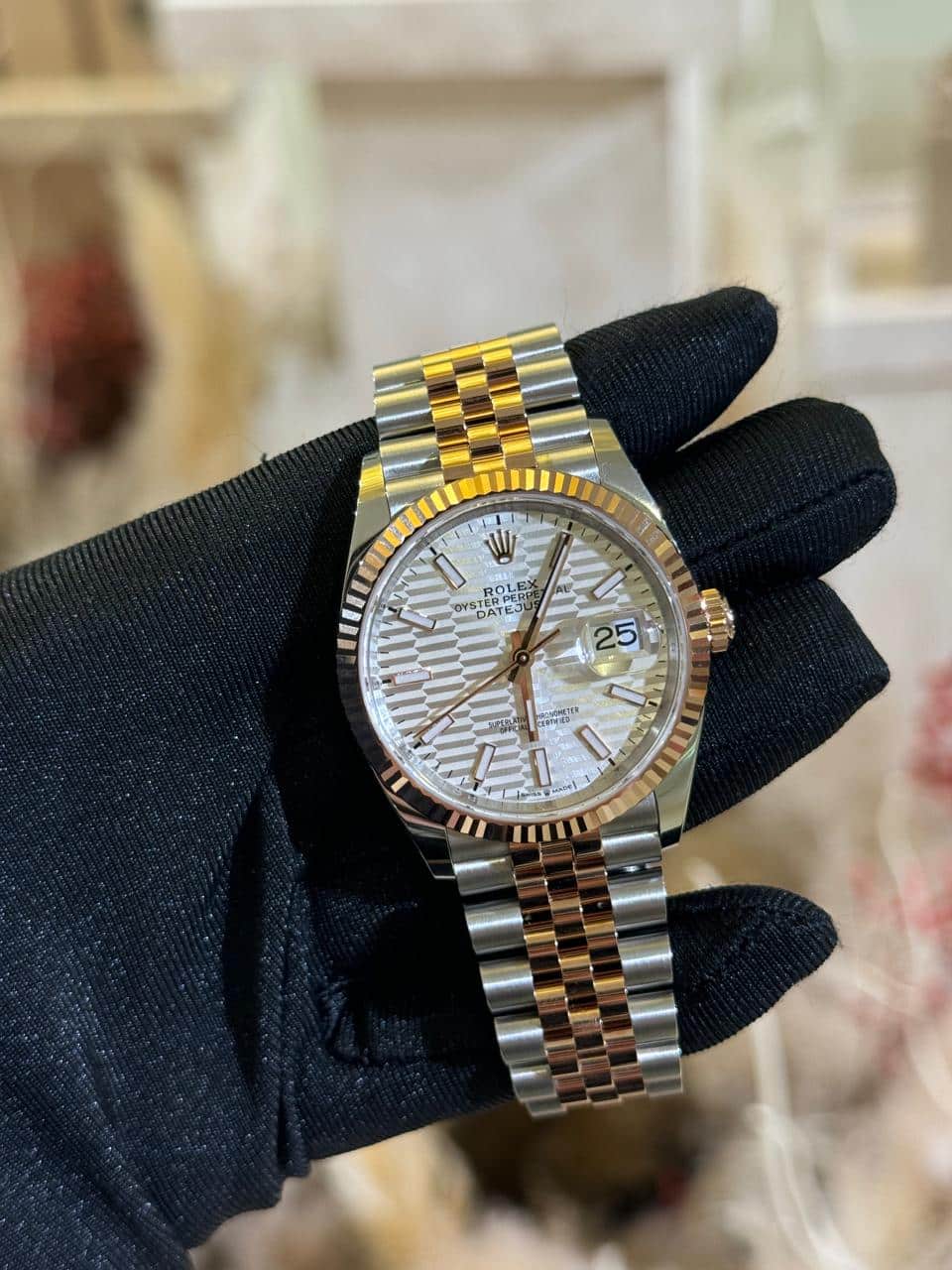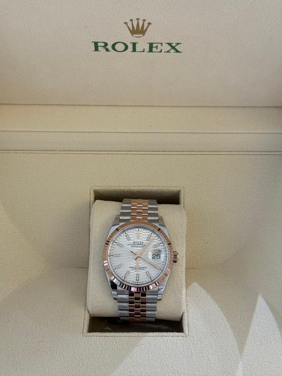 The Rolex Datejust 36mm 126231 is a sophisticated blend of luxury and functionality. This captivating timepiece features a 36mm Everose Rolesor case, which combines the strength of Rolex’s Oystersteel with the elegance of 18k Everose rose gold. The fluted bezel, a Rolex signature, adds a touch of classic design.