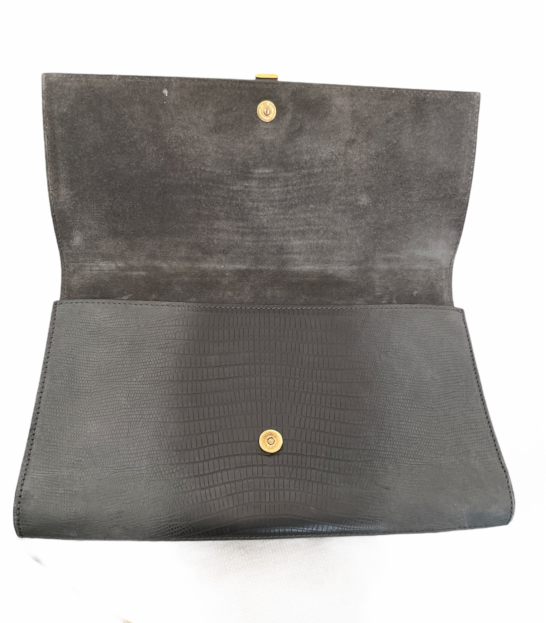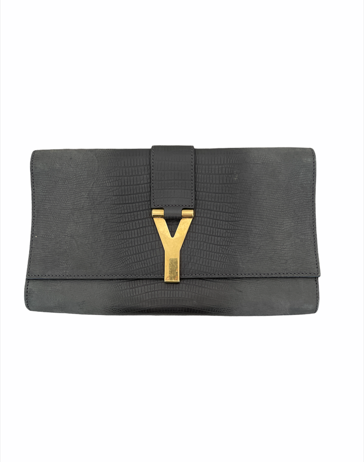 This YSL clutch is the ideal accessory for going out;Â wonderfully crafted from leather with a python effect with the classic YSL Y logo clasp. It also includes a front flap that opens to reveal a satin-lined interior.