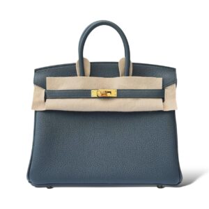 The Hermès Birkin 25 in Bleu de Prusse Togo with Gold Hardware (GHW) is a luxurious and elegant handbag that exudes timeless sophistication. Crafted from durable Togo leather, the bag features a rich Bleu de Prusse color, a deep and captivating blue that adds a refined touch to any ensemble. The sleek Gold Hardware perfectly complements the bag’s classic silhouette, providing a modern yet understated finish. Compact yet spacious enough for your essentials, the Birkin 25 is a true icon of style and craftsmanship, making it an exquisite addition to any collection.